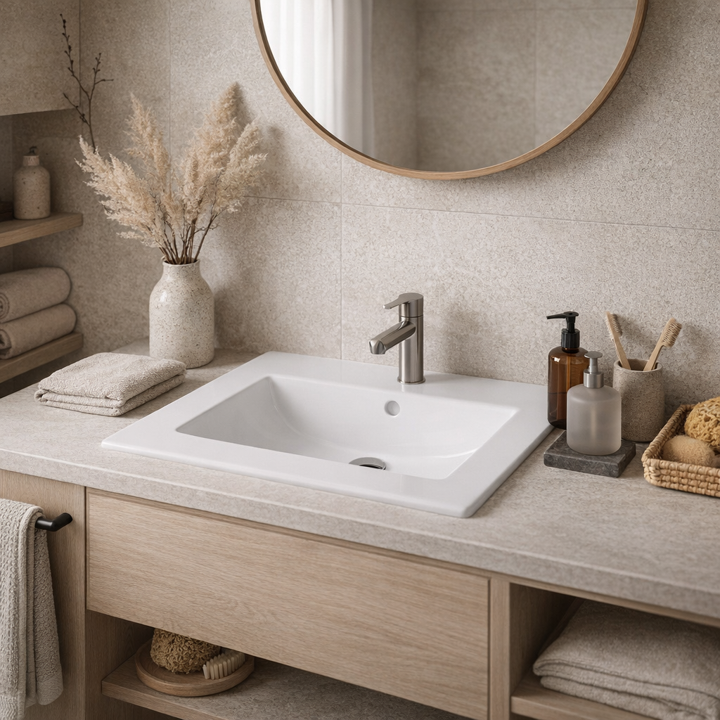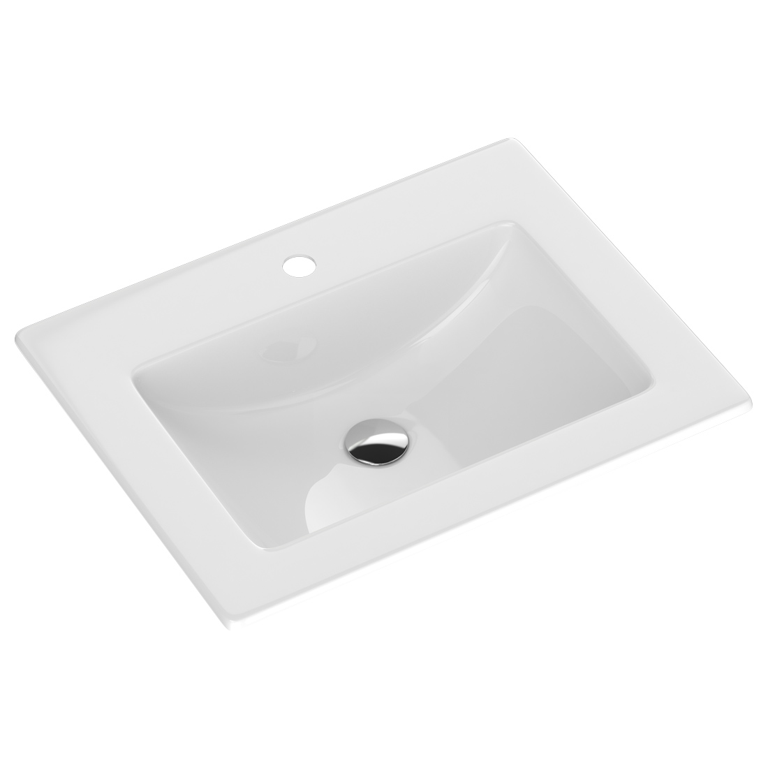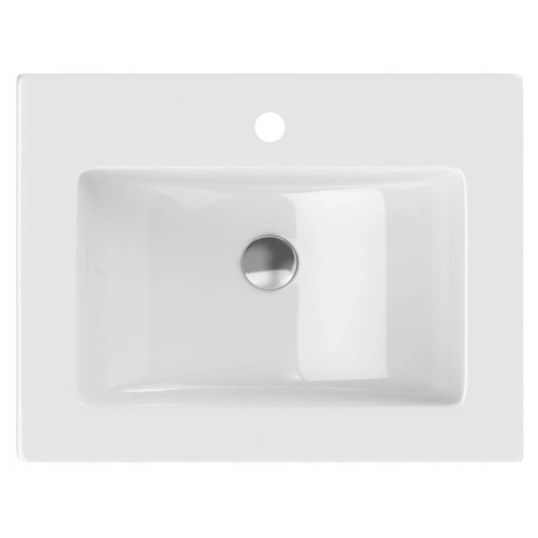 Model w klasycznym białym kolorze wyróżnia się prostą, prostokątną bryłą, dzięki czemu doskonale komponuje się zarówno z klasycznymi, jak i nowoczesnymi aranżacjami łazienkowymi. Montaż wpuszczany / naszafkowy / przyścienny pozwala na elastyczne dopasowanie do układu wnętrza, a konstrukcja sprawia, że umywalka nie wystaje ponad linię blatu, tworząc z nim jedną, spójną powierzchnię. Takie rozwiązanie zapewnia estetyczny i harmonijny efekt wizualny oraz optyczną lekkość zabudowy, co jest szczególnie istotne w mniejszych łazienkach. Gładka powierzchnia bez zbędnych załamań ułatwia utrzymanie czystości i codzienną pielęgnację. Zastosowany materiał gwarantuje trwałość oraz odporność na intensywne użytkowanie.