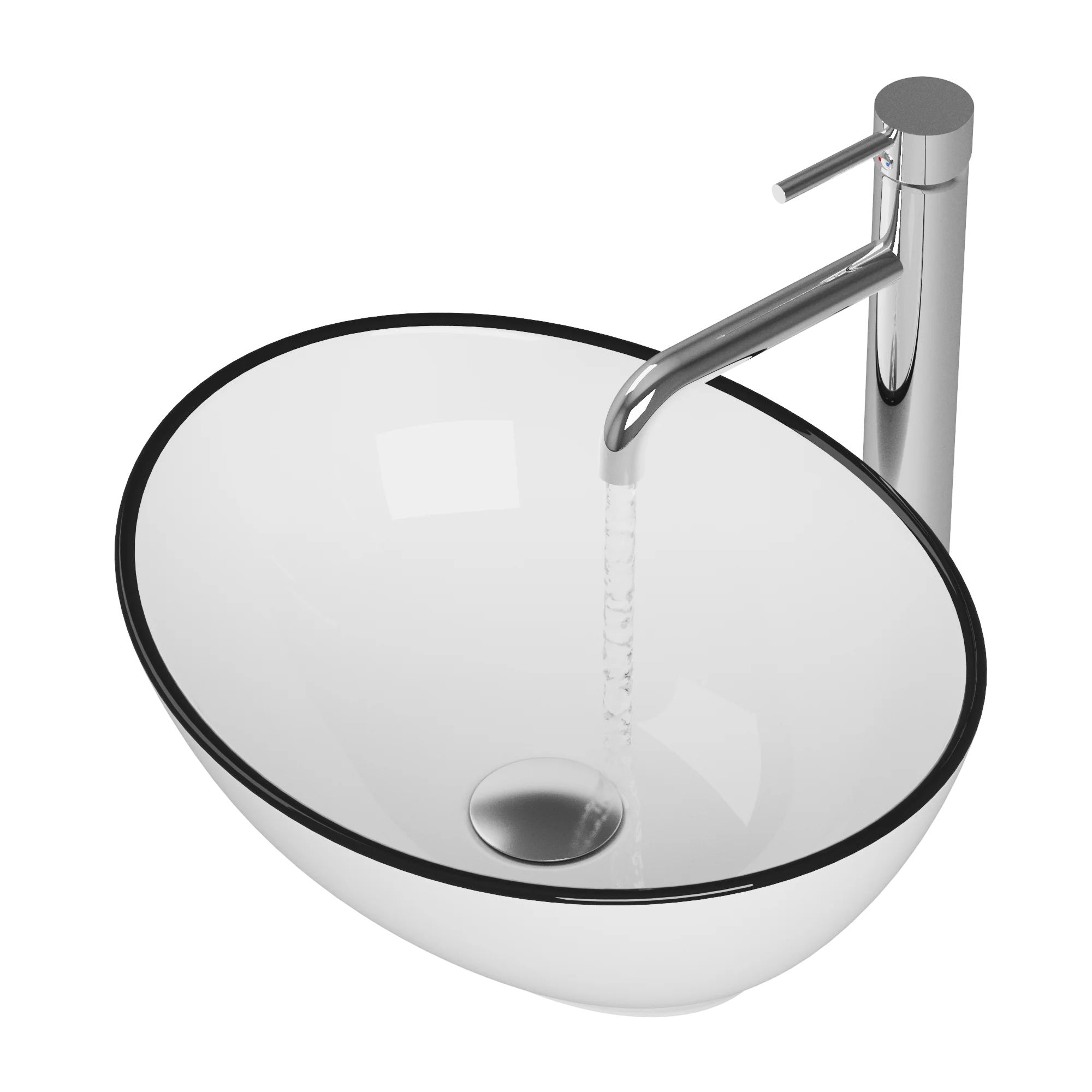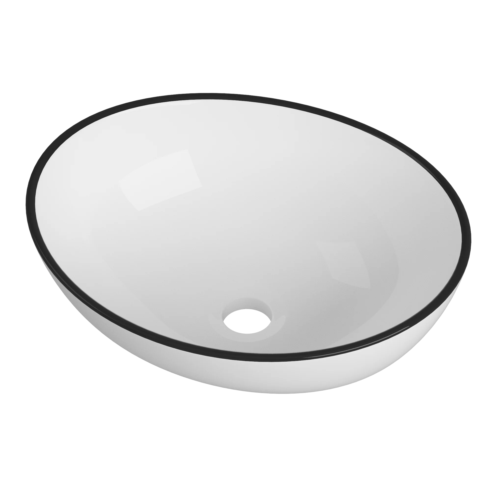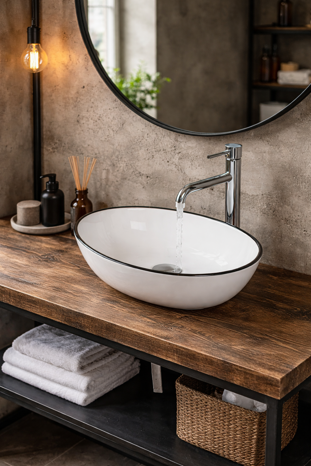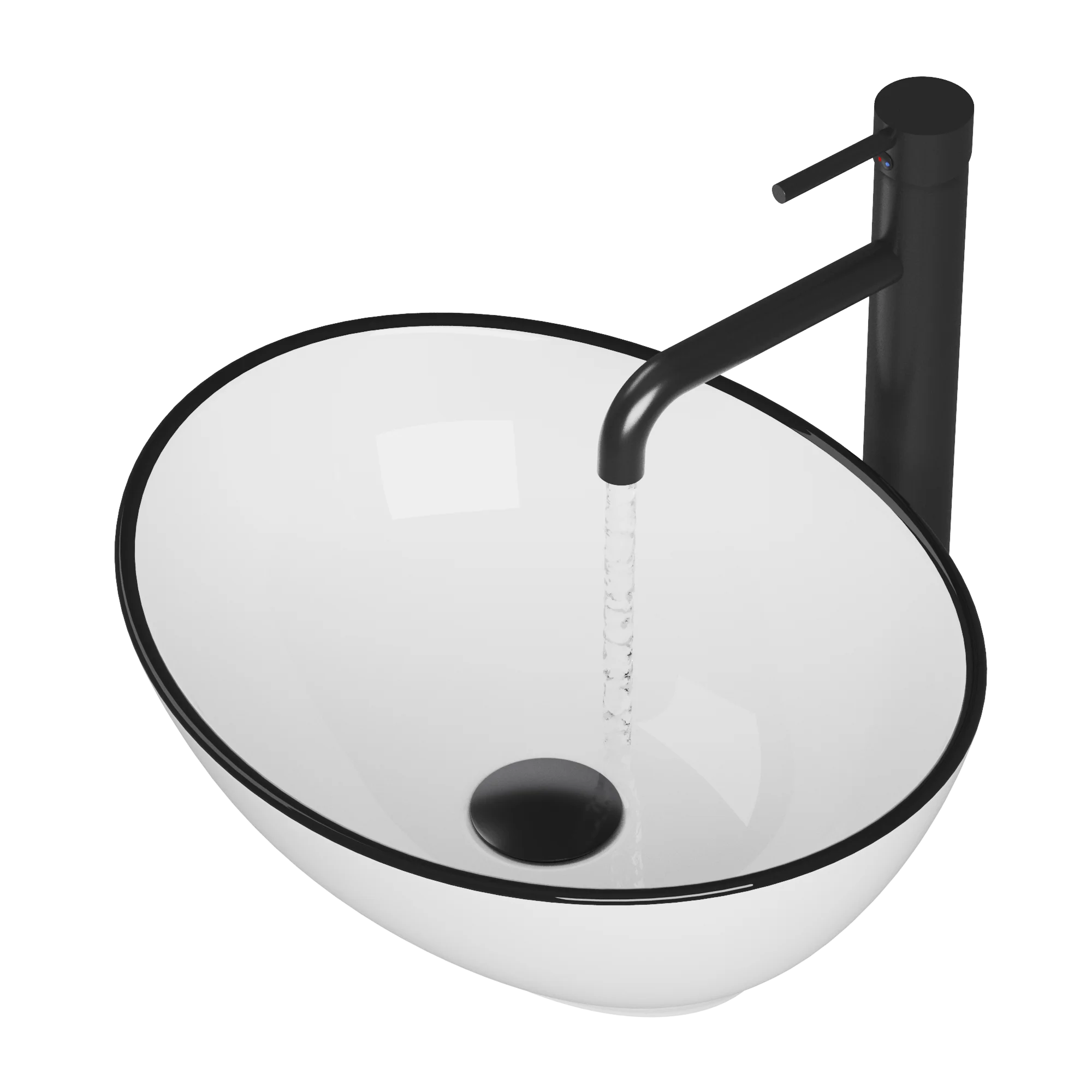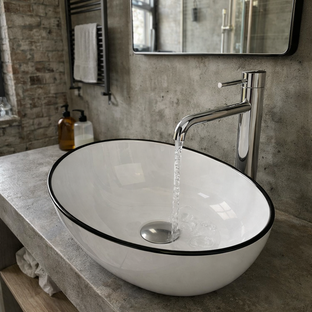 Model w klasycznym białym kolorze z dekoracyjnym czarnym rantemwyróżnia się elegancką, owalną formą, tworząc efektowny kontrast i nadając wnętrzu designerskiego charakteru. Czarna krawędź dekoracyjna stanowi subtelny, ale wyrazisty akcent, idealny do aranżacji nowoczesnych, loftowych i minimalistycznych. Montaż nablatowy pozwala wyeksponować bryłę umywalki i stworzyć estetyczną, uporządkowaną strefę umywalkową. Produkt został wykonany z wysokiej jakości ceramiki, która zapewnia trwałość oraz odporność na codzienne użytkowanie i uszkodzenia. Gładka powierzchnia ceramiczna ułatwia czyszczenie i pozwala zachować estetyczny wygląd przez długi czas. Model RAUL to propozycja dla osób poszukujących nowoczesnej umywalki z charakterystycznym detalem, który podkreśli styl wnętrza.