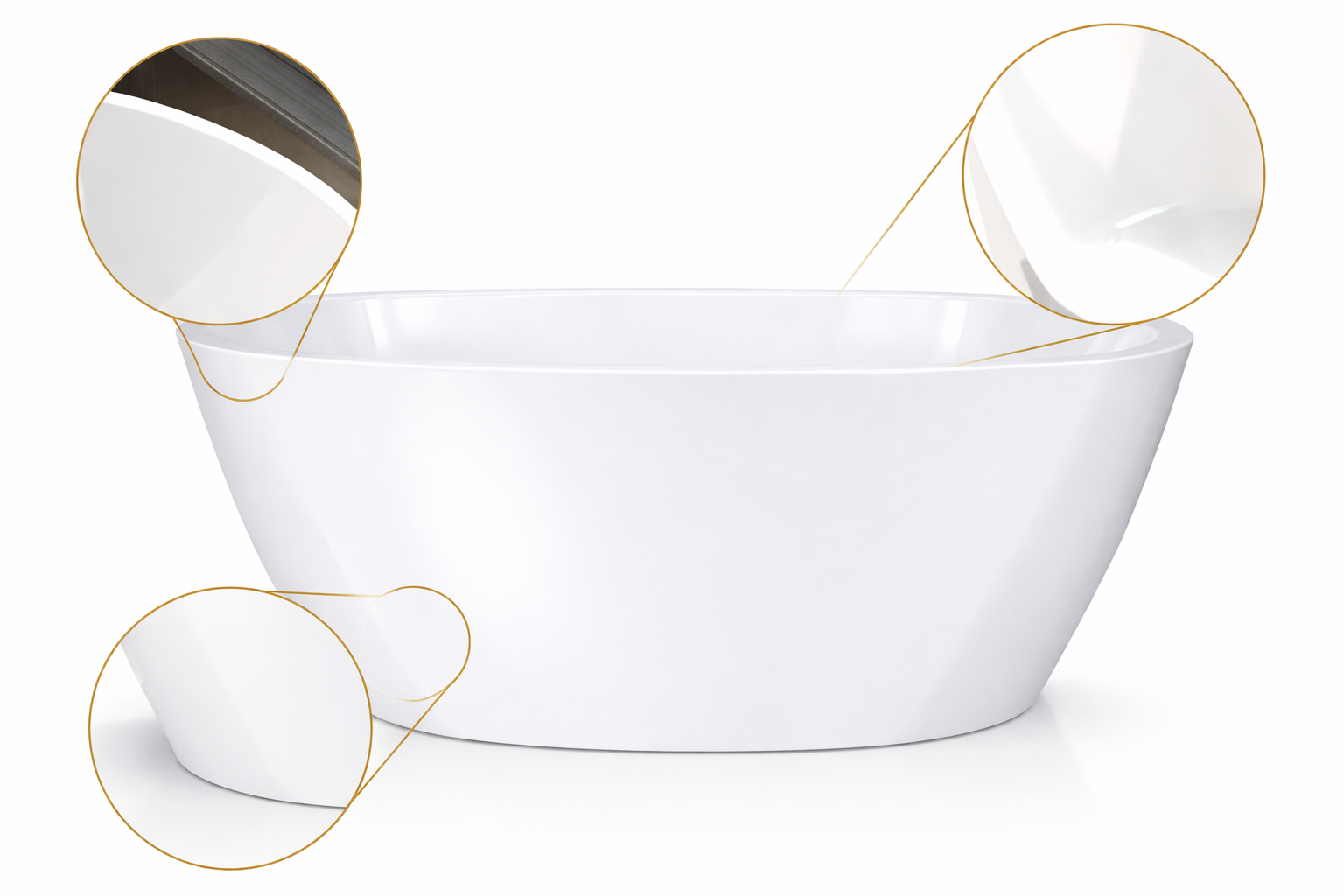 Śnieżnobiały połysk, delikatna linia oraz ergonomiczny, owalny kształt sprawiają, że każda kąpiel staje się wyjątkowym rytuałem odprężenia, a zastosowanie odlewu mineralnego S-Marble gwarantuje wyjątkową solidność, stabilność oraz odporność na uszkodzenia przez długie lata użytkowania. Wanna jest ciężka i stabilna, dzięki czemu nie przesuwa się podczas użytkowania, a jej struktura skutecznie tłumi hałas nalewanej wody, zapewniając ciszę i komfort, którego nie oferują standardowe wanny akrylowe czy ceramiczne. Materiał ten wyróżnia się również zdolnością do długiego utrzymywania temperatury wody, co pozwala na długie i relaksujące kąpiele bez konieczności jej ciągłego podgrzewania. Idealnie gładka powierzchnia bez porów i łączeńułatwia utrzymanie czystości i zapewnia wysoki poziom higieny, a dodatkowo jest odporna na promieniowanie UV, dzięki czemu nie żółknie i zachowuje swój nieskazitelny wygląd przez lata. Nowoczesny charakter podkreślają cienkie ranty, które nadają bryle lekkości i elegancji, natomiast centralny odpływ zapewnia wygodę użytkowania z każdej strony. Owalna forma została zaprojektowana tak, aby zapewnić maksymalny komfort i idealne podparcie ciała, co przekłada się na pełne odprężenie podczas kąpieli. Produkt jest bezpiecznie zapakowany, co minimalizuje ryzyko uszkodzeń w transporcie, a ekspresowa wysyłka pozwala cieszyć się nową wanną nawet w bardzo krótkim czasie od zakupu.