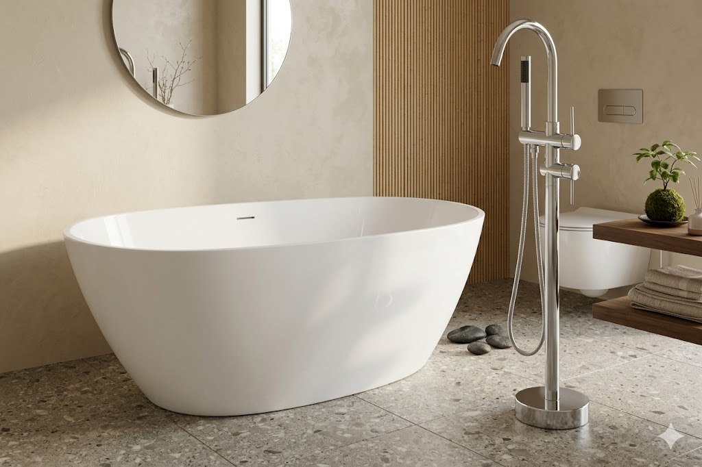 Model PRAO 150 to kompletny zestaw premium, który łączy w sobie nowoczesny design, funkcjonalność i wygodę użytkowania, oferując wannę z odlewu mineralnego S-Marble, elegancką chromowaną baterię stojącą ROYA, a także chromowany syfon i korek klik-klak, dzięki czemu otrzymujesz w pełni spójny zestaw bez konieczności dokupowania dodatkowych elementów.