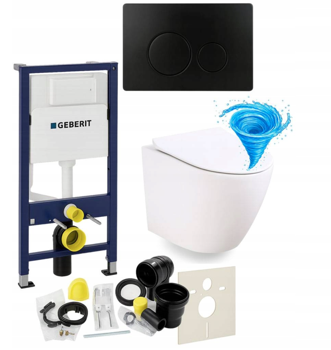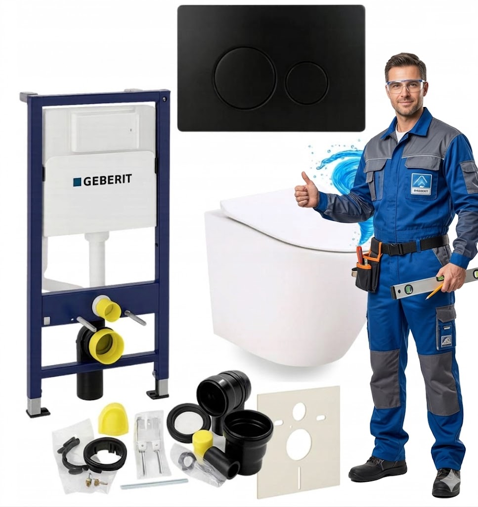 Zestaw zawiera również wszystkie elementy montażowe, w tym matę wygłuszającą, zestaw przyłączeniowy z rurą spłukującą, kolankiem odpływowym i uszczelkami oraz śruby, wsporniki i zaślepki, dzięki czemu instalacja jest szybka i wygodna. System przeznaczony jest do montażu w ścianie murowanej lub zabudowie z płyt gipsowo-kartonowych i kompatybilny z miskami WC wiszącymi o rozstawie otworów 18 cm lub 23 cm oraz przyciskami Geberit Delta.