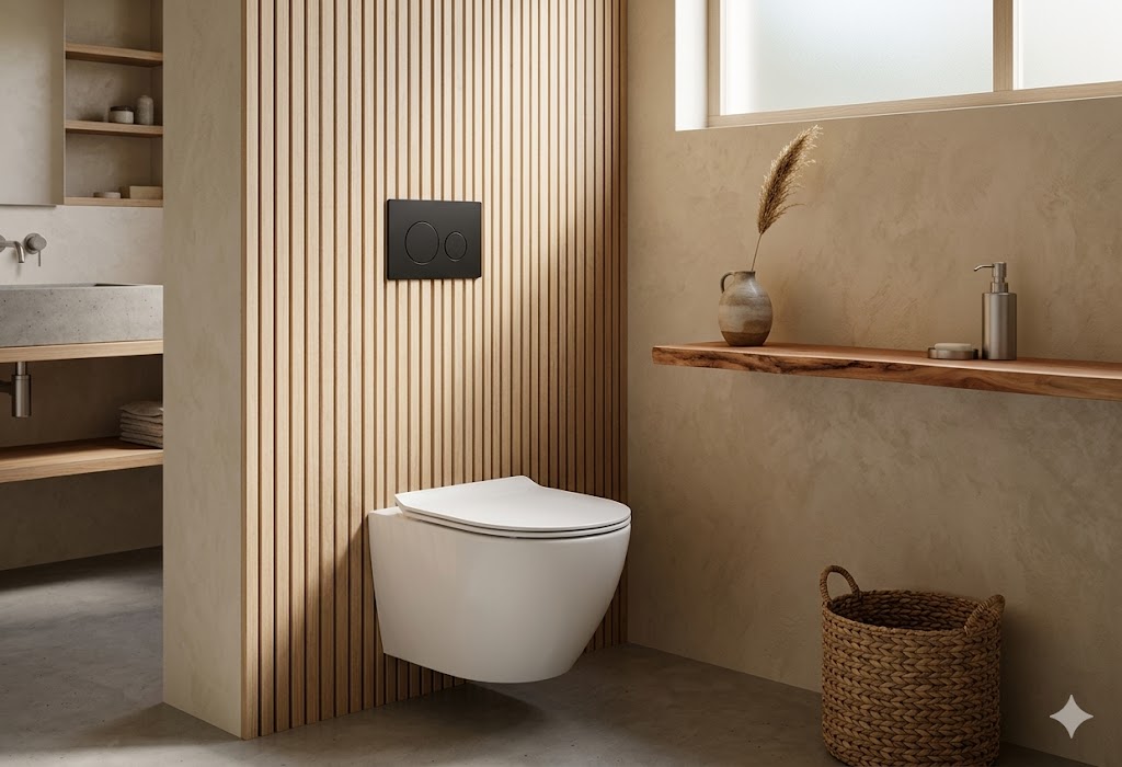 Sercem zestawu jest stelaż podtynkowy Geberit UP100, ceniony za trwałość i niezawodność. Samonośna stalowa rama malowana proszkowo zapewnia stabilność konstrukcji oraz wytrzymałość do 400 kg, a regulowane nogi w zakresie 0–20 cm umożliwiają dopasowanie wysokości montażu do warunków instalacyjnych. Spłuczka wyposażona jest w dwudzielny system spłukiwania, który pozwala ograniczyć zużycie wody, a także w izolację przeciwroszeniową, chroniącą przed skraplaniem wilgoci. System umożliwia regulację ilości wody spłukującej, natychmiastowe ponowne spłukiwanie oraz podłączenie wody od góry lub z tyłu, co zwiększa elastyczność instalacji.
