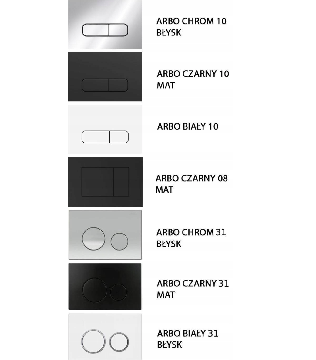 W zestawie znajduje się miska WC ARBO TORNADO wykonana z wysokiej jakości ceramiki sanitarnej. Bezkołnierzowa konstrukcja ogranicza gromadzenie się zabrudzeń i bakterii, co znacząco ułatwia utrzymanie higieny. Do kompletu dołączona jest deska sedesowa wolnoopadająca, która zapewnia ciche zamykanie oraz łatwe wypinanie do czyszczenia. Całość uzupełnia przycisk spłukujący Geberit ARBO w kolorze czarnym, który nadaje zestawowi elegancki i nowoczesny charakter.