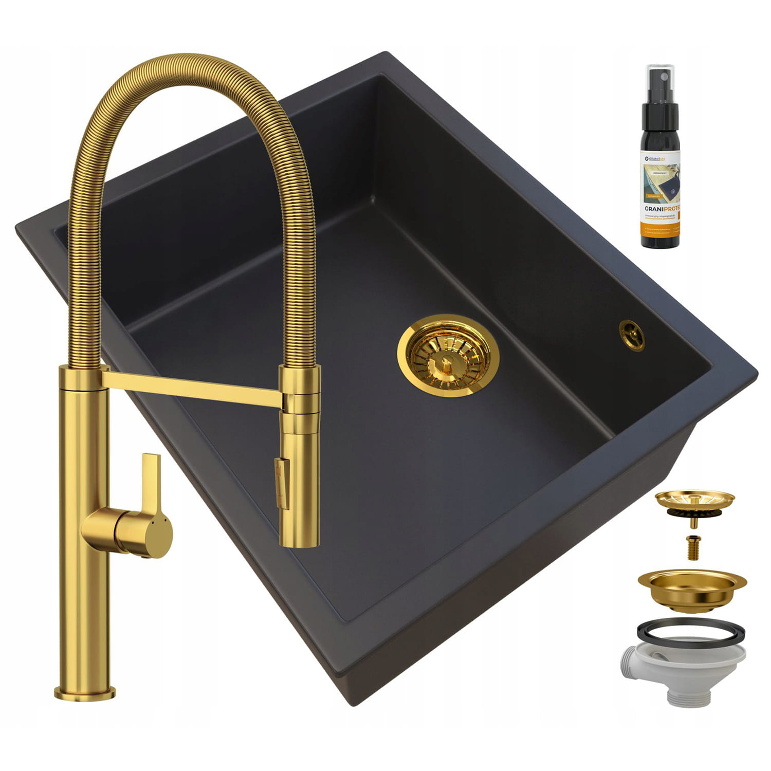 Zestaw SALIX Gold 2 - zlew + złota bateria + złoty syfon + impregnat