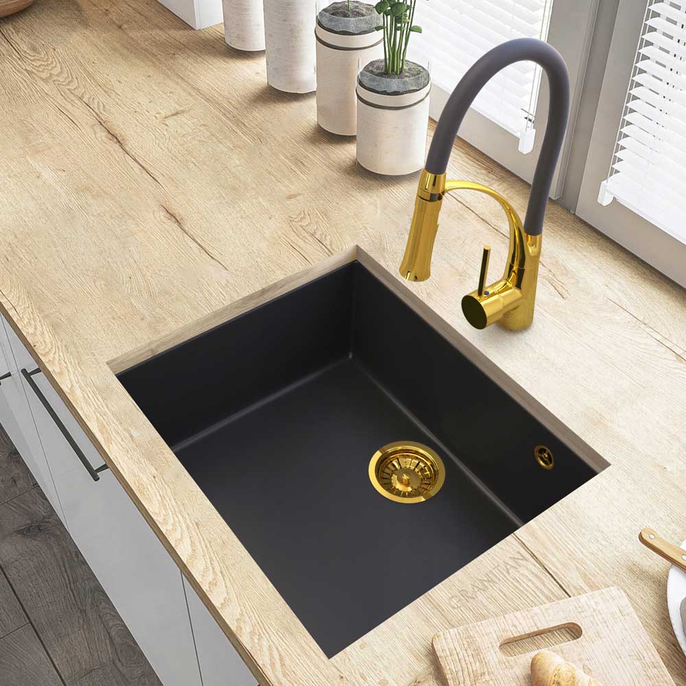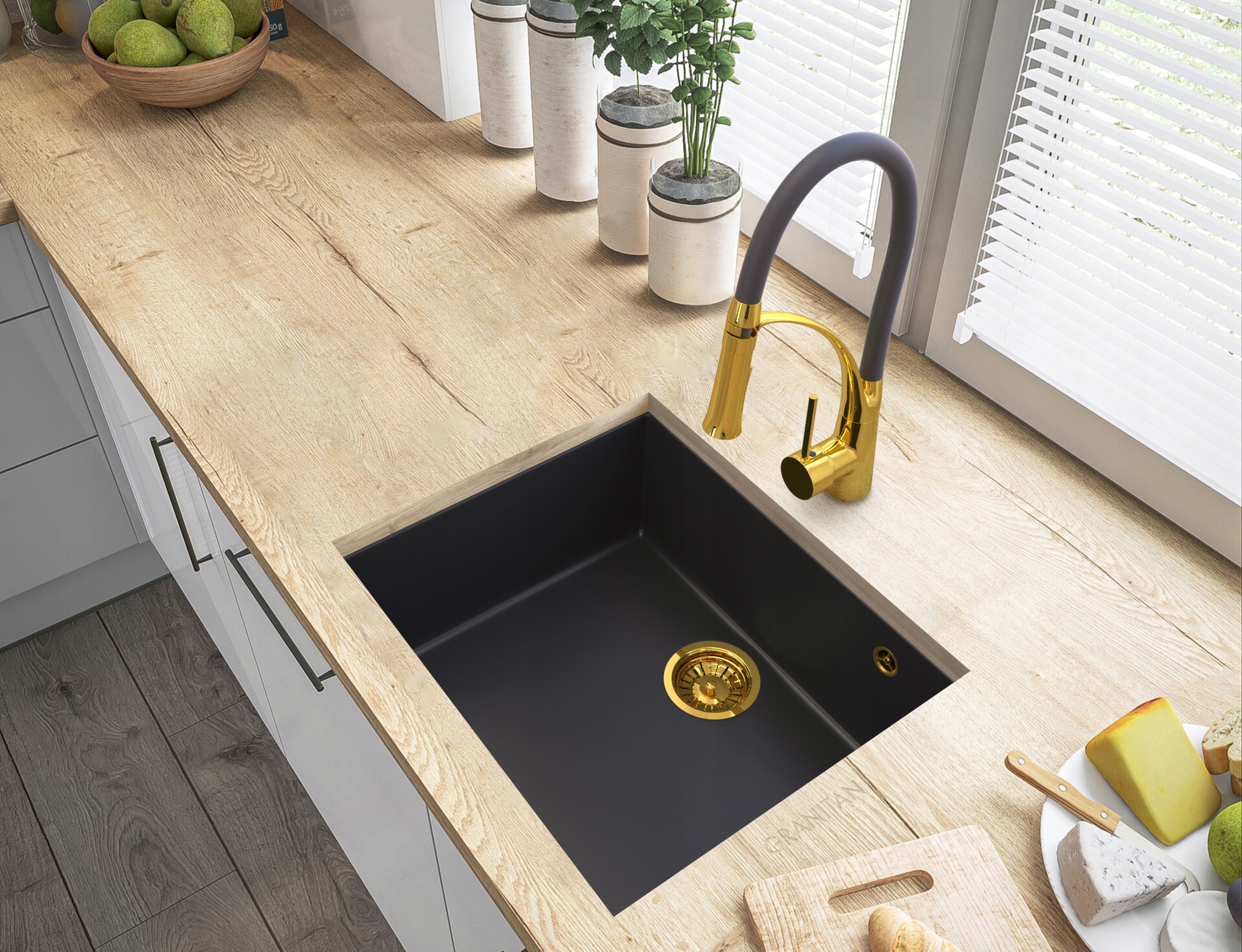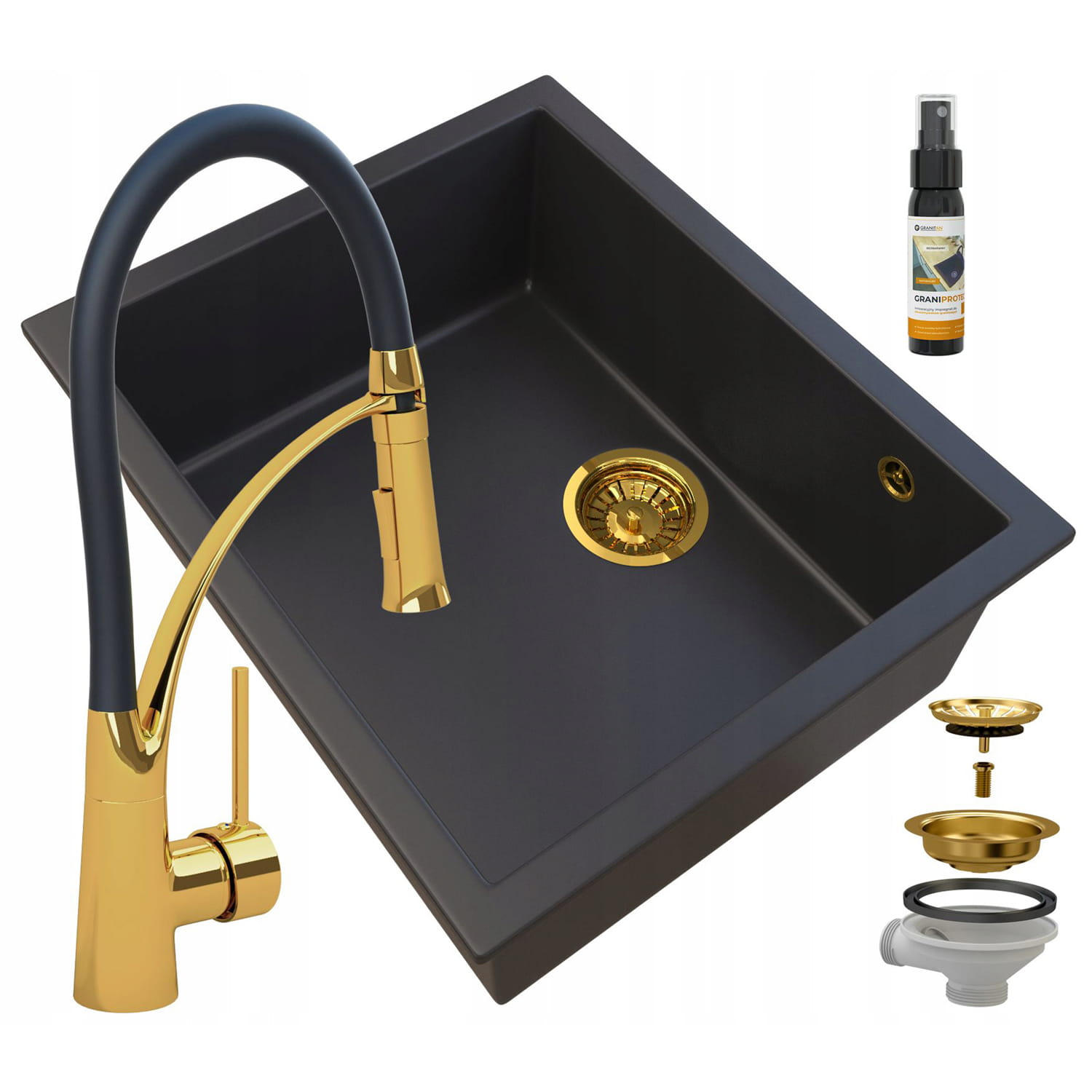 Zestaw SALIX Gold - zlew + złota bateria + złoty syfon + impregnat
