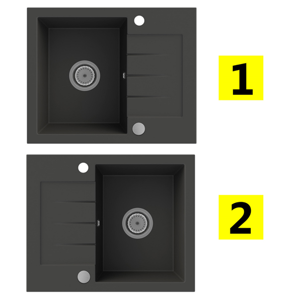 Zlew posiada dwa otwory (zlew odwracalny), w zestawie dodajemy zaślepkę jeżeli jeden z otworów miałby nie zostać wykorzystany.