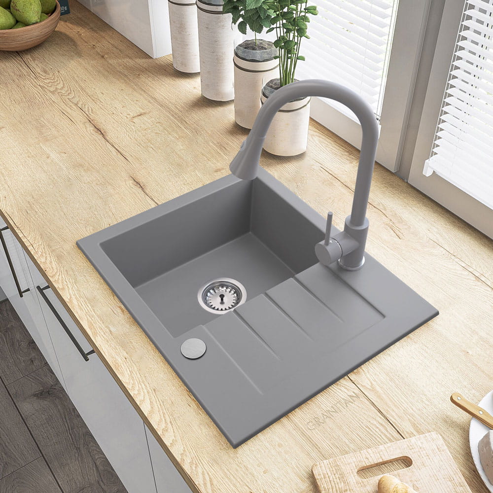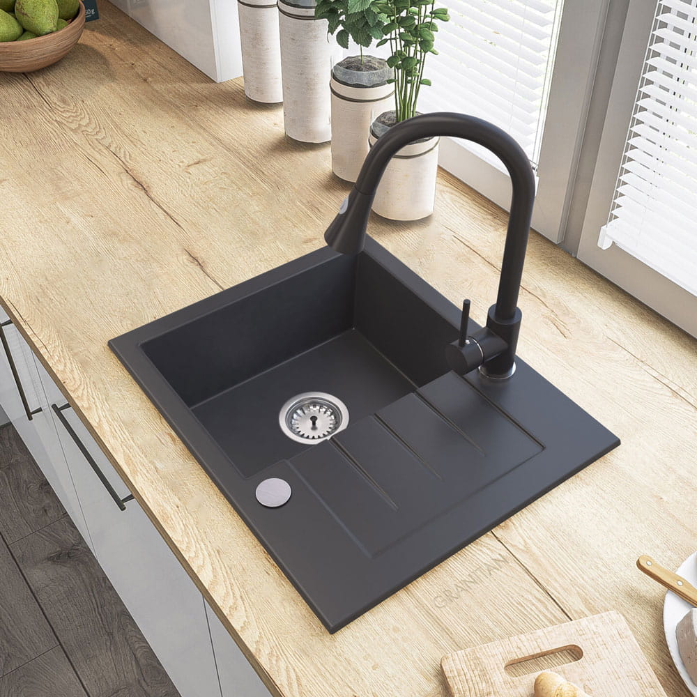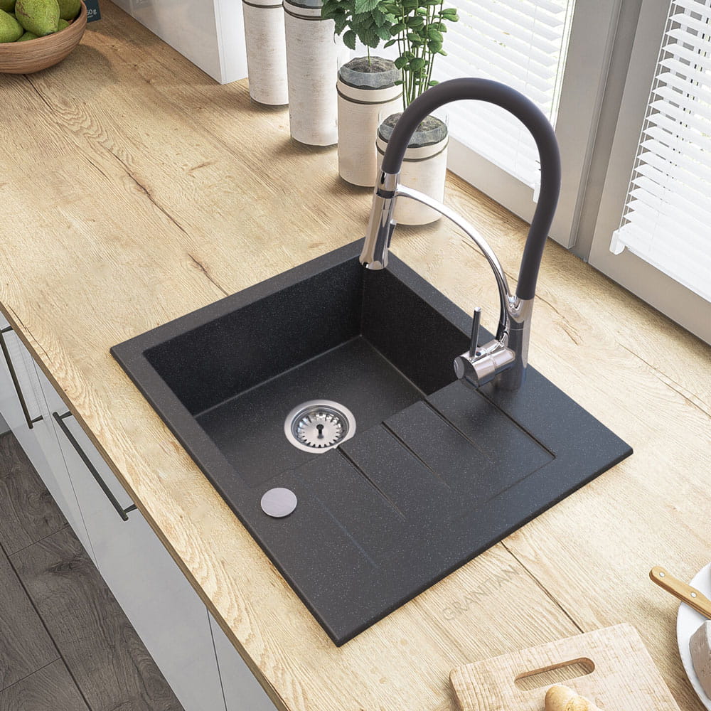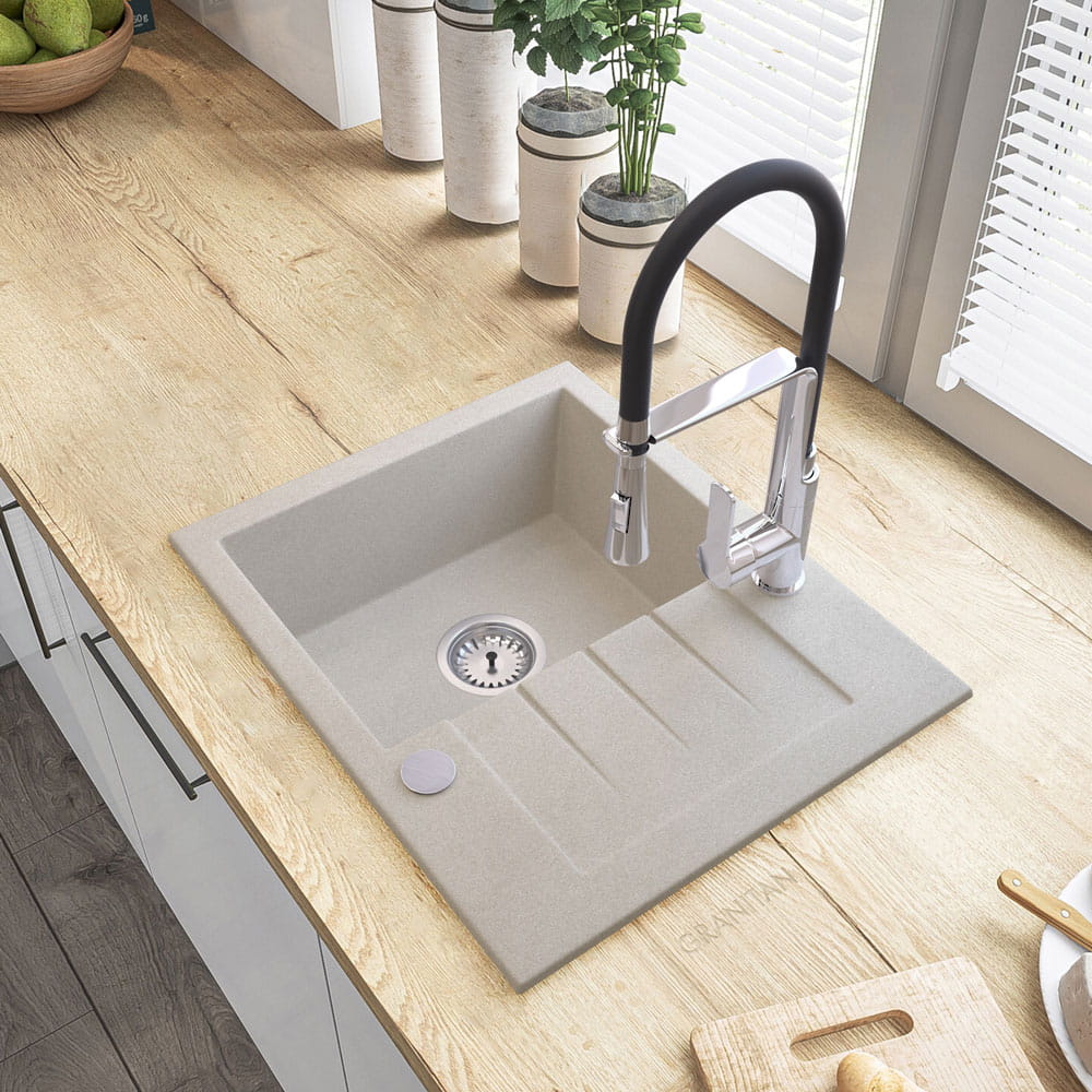 ● Zlewozmywak TINOS, to wysokiej jakości granitowy, jednokomorowy zlewozmywak do szafki od 40 cm. Wyprodukowany przez polskiego producenta. Gwarancja najwyższej wytrzymałości, dzięki specjalnej mieszance granitan plusR – odpornej na przebarwienia i zarysowania. Cechuje go wysoka odporność na gwałtowne zmiany temperatury (-18+280 stopni) oraz matowa, łatwa do czyszczenia powierzchnia,