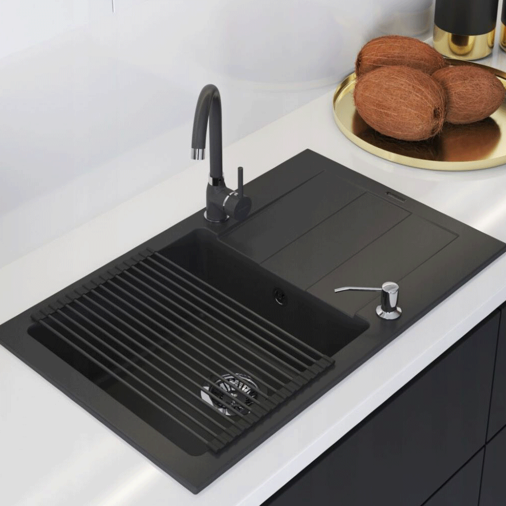 Zestaw - Zlew Pyramis Sparta Plus Karbon - bateria - dozownik - rolmata