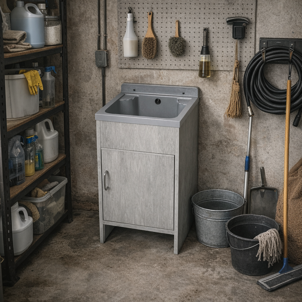 Zestaw gospodarczy HOKA + szafka PCV to praktyczne i kompletne rozwiązanie przeznaczone do pralni, garażu, warsztatu oraz pomieszczeń technicznych.