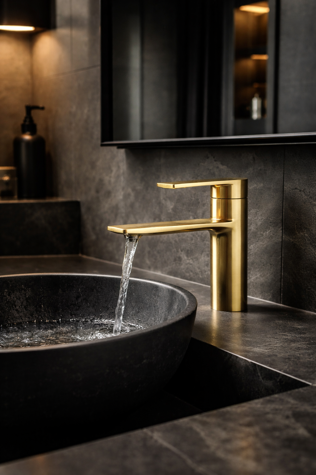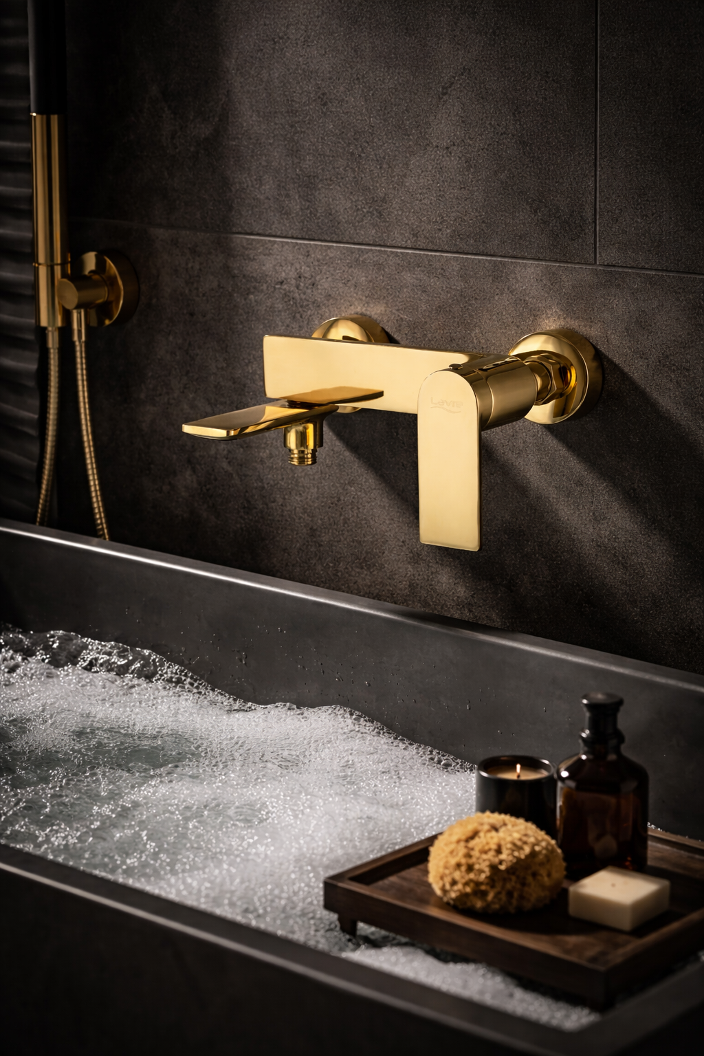 Zestaw łazienkowy ROLES – bateria umywalkowa stojąca + bateria wannowa to eleganckie i spójne rozwiązanie do nowoczesnych łazienek o luksusowym charakterze. Złote wykończenie nadaje wnętrzu prestiżowy wygląd, a harmonijne wzornictwo obu baterii pozwala stworzyć konsekwentną i estetyczną aranżację całej strefy umywalkowej i kąpielowej.
