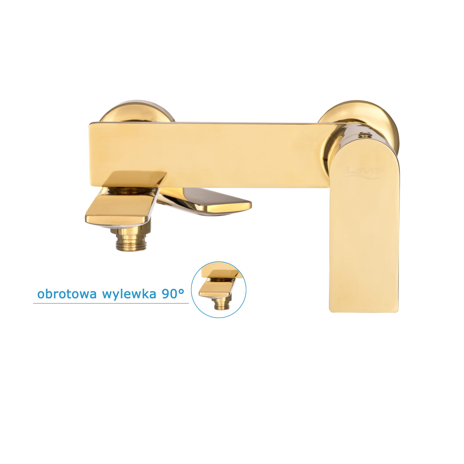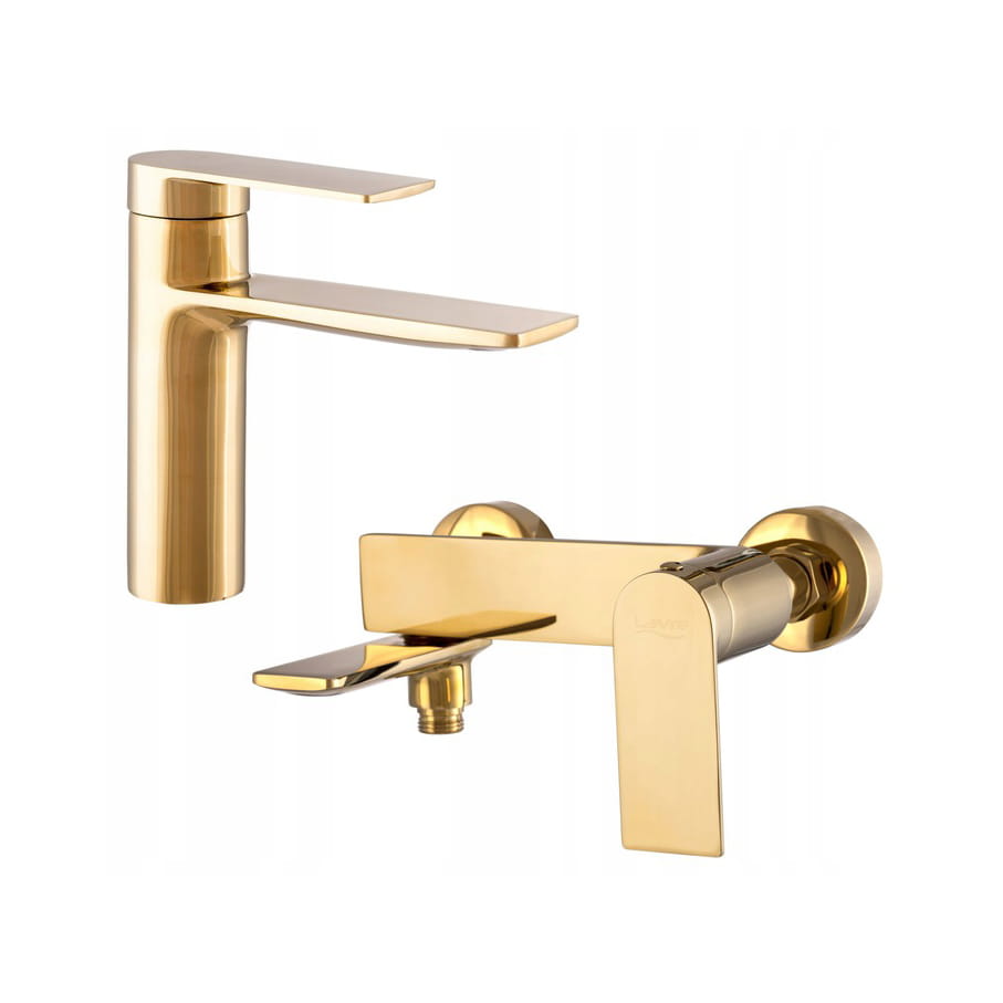 Zestaw łazienkowy bateria umywalkowa stojąca + bateria wannowa złota ROLES