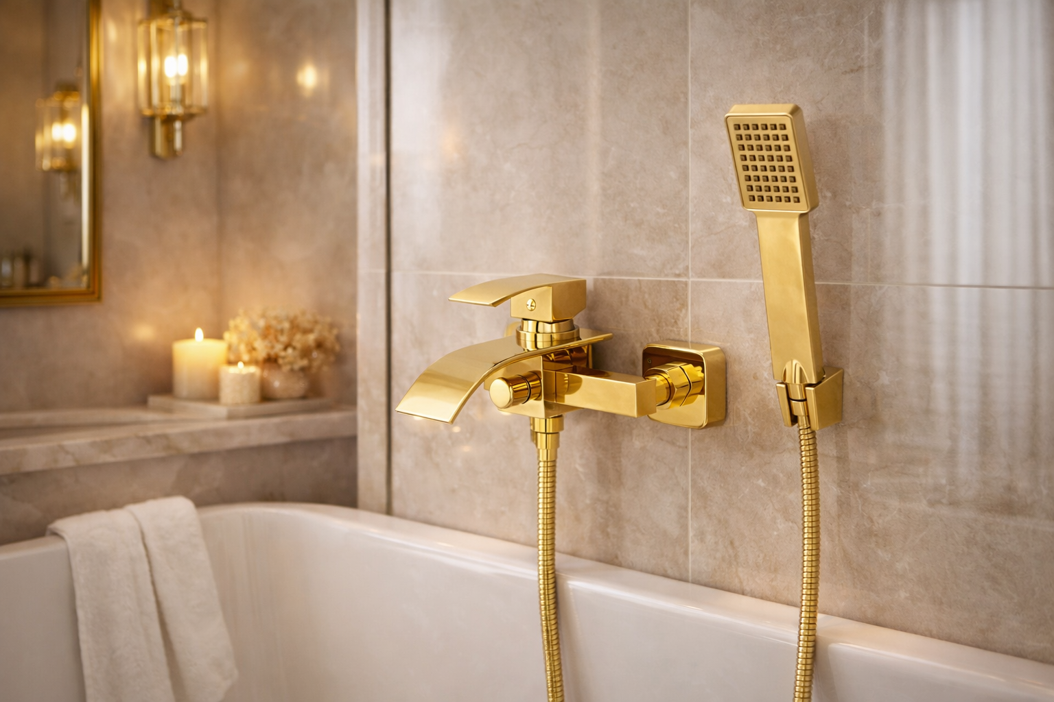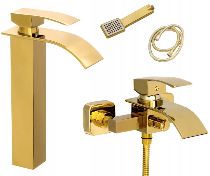 Zestaw łazienkowy - bateria umywalkowa + wannowa z natryskiem złoty DUNO