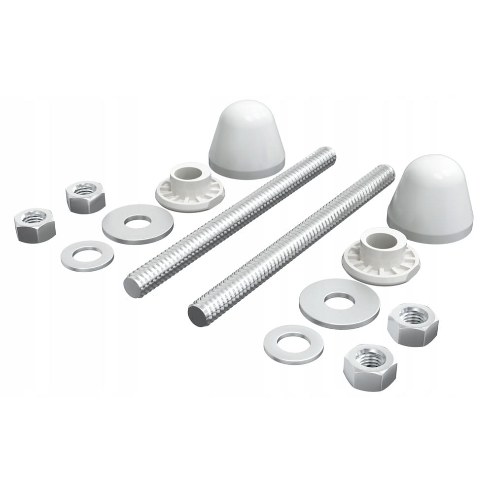 Zestaw mocujący do misy WC na stelażu podtynkowym. Pozwala na bezproblemowy montaż. Tuleja szpilki razem z osłoną.