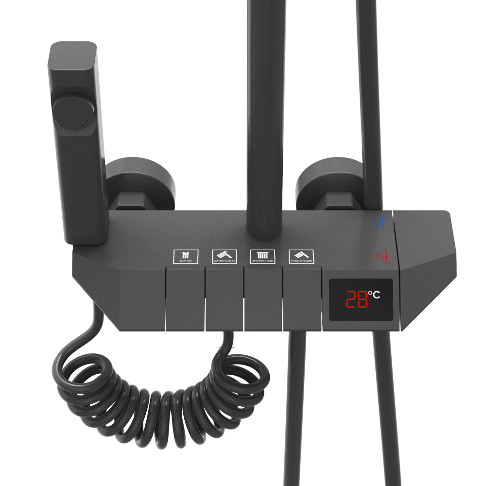 ● Łatwa obsługa dzięki wygodnym, intuicyjnym przyciskom do wyboru źródła wody (górna deszczownica, słuchawka prysznicowa, dolny wypływ).