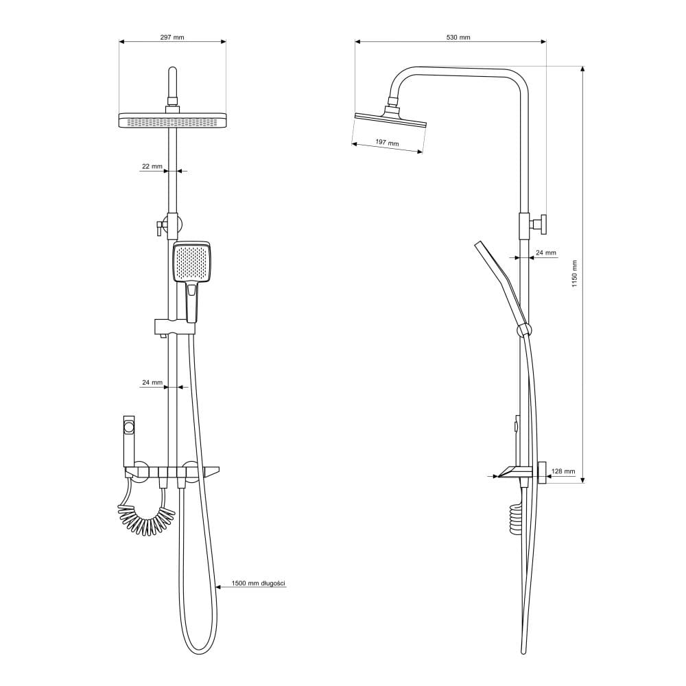 ● Zestaw 3-funkcyjny: deszczownica górna, słuchawka prysznicowa oraz elastyczny wąż z dolnym wypływem, idealny do dodatkowych zastosowań.
