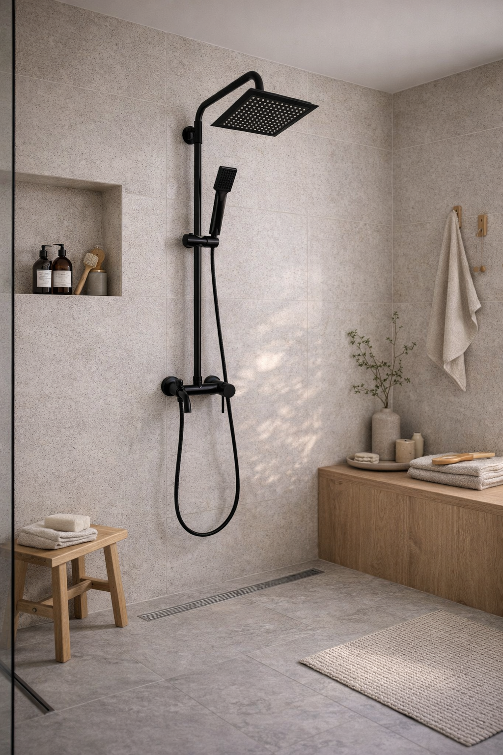 Zestaw natryskowy RESO z deszczownicą SLIM to kompletne i dopracowane rozwiązanie do nowoczesnych łazienek, w których liczy się elegancki wygląd, trwałość oraz komfort codziennego użytkowania. Smukła deszczownica SLIMnadaje strefie prysznica lekkości i nowoczesnego charakteru, zapewniając jednocześnie relaksujący, równomierny strumień wody.
