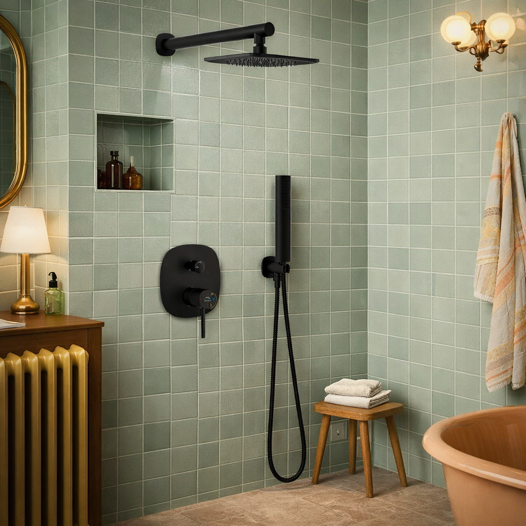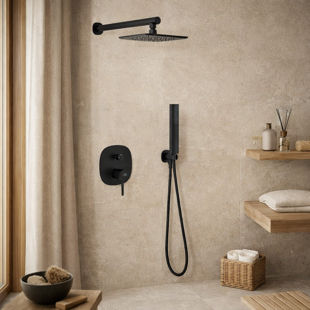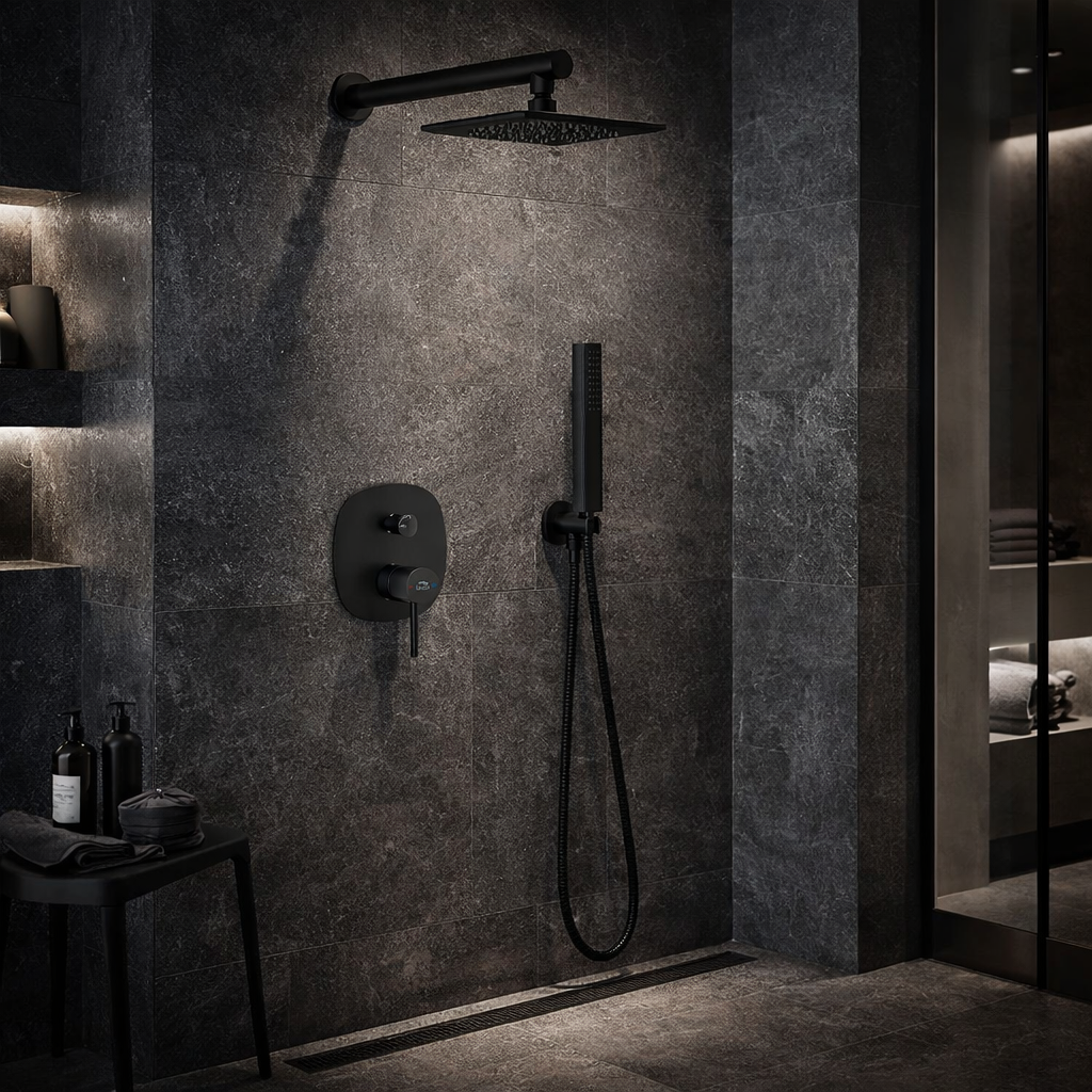 Zestaw natryskowy prysznicowy podtynkowy PAOLE to eleganckie i funkcjonalne rozwiązanie do nowoczesnych łazienek, w których liczy się minimalistyczny wygląd i komfort codziennego użytkowania. Czarne wykończenie nadaje strefie prysznica wyrazisty, designerski charakter, a montaż podtynkowy pozwala zachować estetyczny porządek i optyczną lekkość wnętrza.