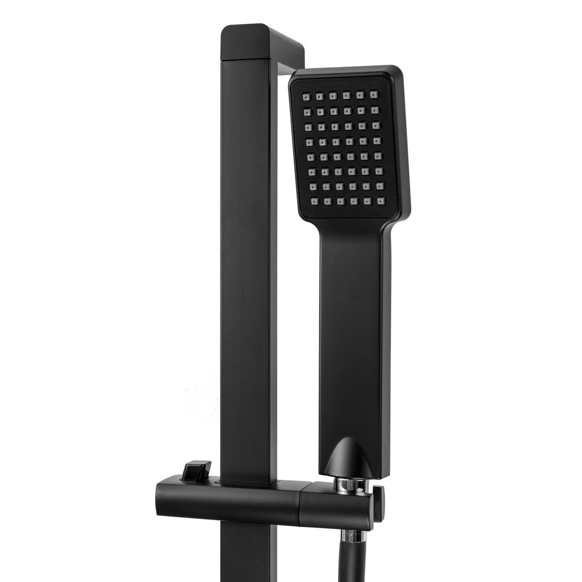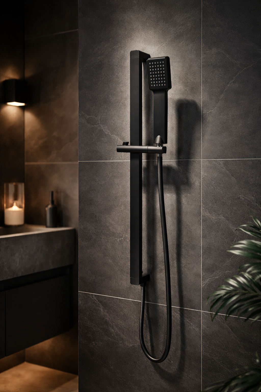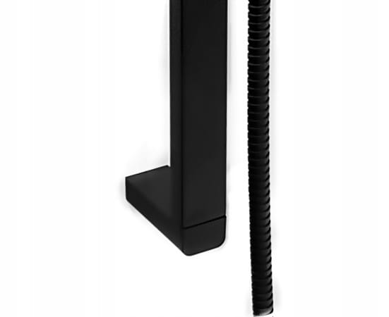 Zestaw wykonany jest z trwałego połączenia mosiądzu i tworzywa PCV, co zapewnia stabilność, odporność na wilgoć i długą żywotność. Czarne wykończenie nadaje całości nowoczesny, loftowy charakter i doskonale komponuje się z minimalistycznymi aranżacjami łazienkowymi. Zastosowana powłoka odporna na przebarwienia i wysoką temperaturę pozwala zachować estetyczny wygląd zestawu przez długi czas.