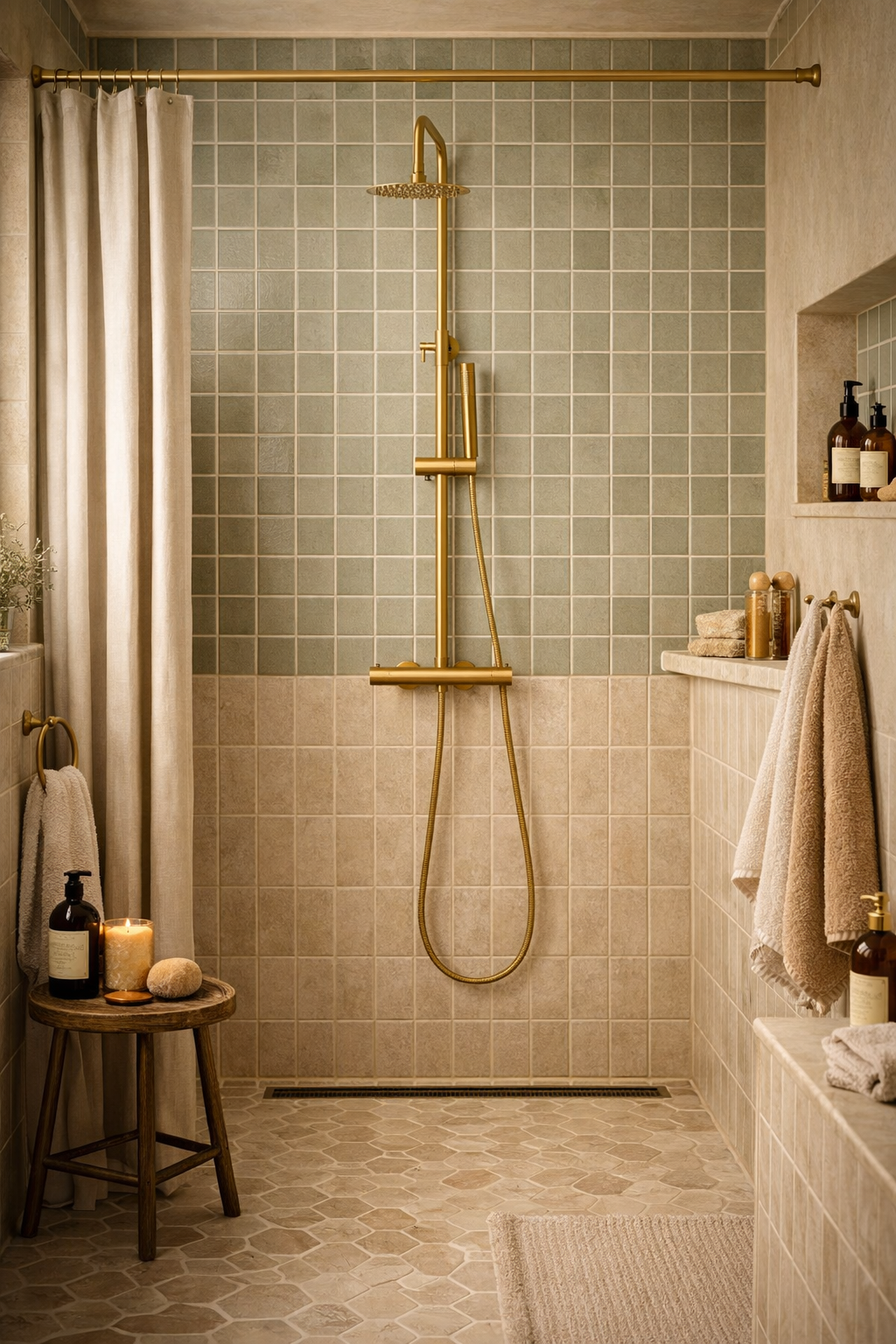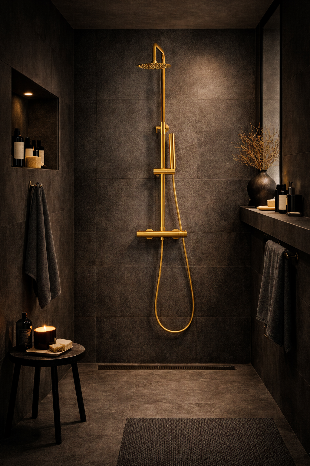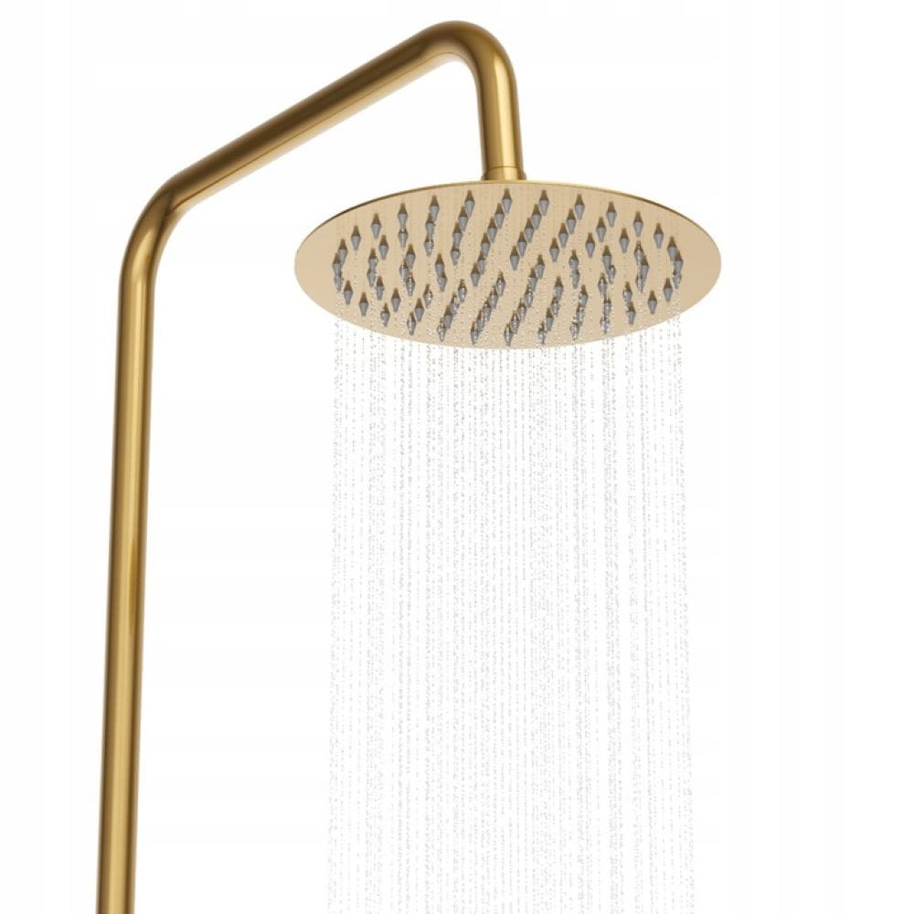 Zestaw natryskowy termostatyczny GAMO z deszczownicą to nowoczesne i bezpieczne rozwiązanie do strefy prysznica, zaprojektowane z myślą o maksymalnym komforcie codziennej kąpieli. Zastosowana bateria termostatycznautrzymuje stałą temperaturę wody niezależnie od wahań ciśnienia w instalacji, co znacząco podnosi wygodę i bezpieczeństwo użytkowania. Złote wykończenie nadaje całości elegancki, ponadczasowy wygląd i doskonale komponuje się z nowoczesnymi aranżacjami łazienek.