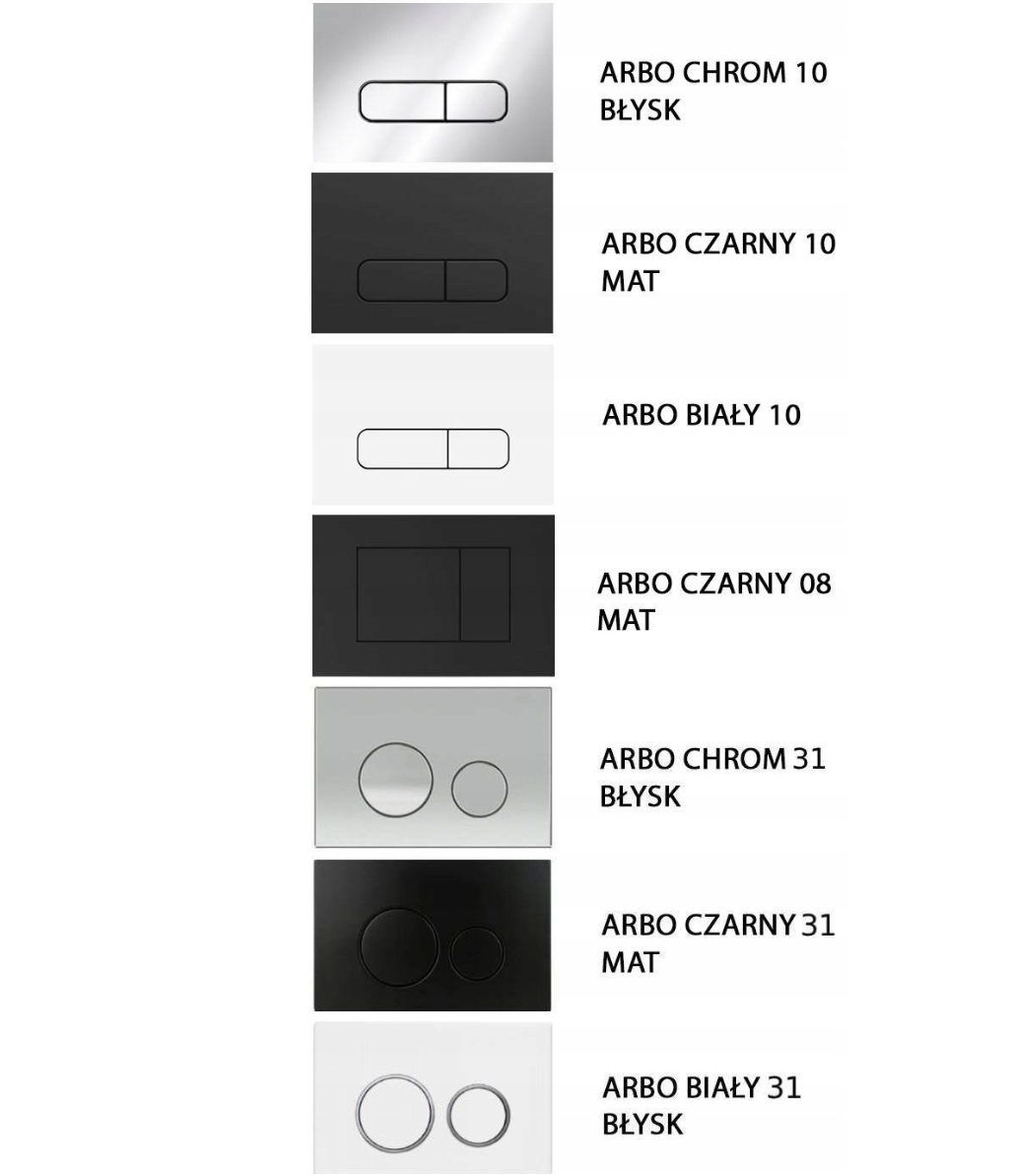 W zestawie znajduje się miska WC ARBO TORNADO wykonana z wysokiej jakości ceramiki sanitarnej. Bezkołnierzowa konstrukcja ogranicza gromadzenie się zabrudzeń i bakterii, co znacząco ułatwia utrzymanie higieny. Do kompletu dołączona jest deska sedesowa wolnoopadająca, która zapewnia ciche zamykanie oraz łatwe wypinanie do czyszczenia. Całość uzupełnia przycisk spłukujący Geberit ARBO w kolorze białym, który nadaje zestawowi elegancki i nowoczesny charakter.