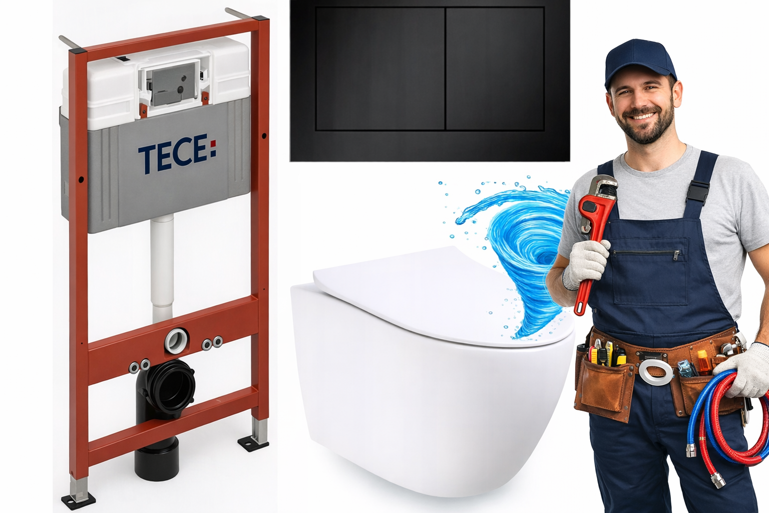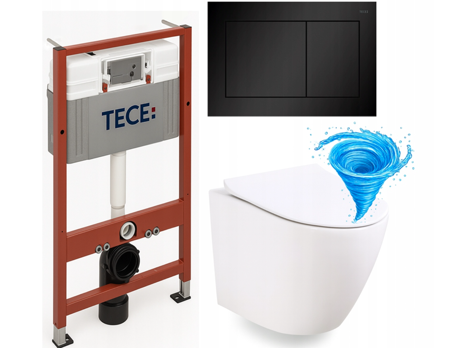 Zestaw zawiera również wszystkie elementy montażowe, w tym matę wygłuszającą, zestaw przyłączeniowy z rurami odpływowymi i uszczelkami oraz wspornik i śruby montażowe, dzięki czemu instalacja jest szybka i wygodna. System przeznaczony jest do montażu w ścianach murowanych lub zabudowie z płyt gipsowo-kartonowych i kompatybilny z miskami WC wiszącymi o rozstawie 18 cm lub 23 cm oraz systemami przycisków TECE.