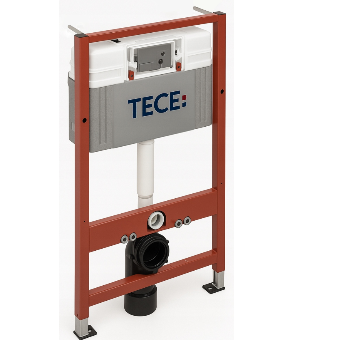 Podstawą zestawu jest stelaż TECE, zaprojektowany z myślą o trwałości i niezawodności. Samonośna stalowa konstrukcja z ramą malowaną proszkowo zapewnia stabilność oraz długą żywotność, a regulowane nogi w zakresie 0–20 cm umożliwiają dopasowanie wysokości montażu do warunków instalacyjnych. System wyposażony jest w spłuczkę podtynkową uruchamianą z przodu, izolację przeciwroszeniową oraz dwudzielny system spłukiwania, który pozwala ograniczyć zużycie wody. Dodatkowo możliwa jest regulacja ilości spłukiwania oraz natychmiastowe ponowne uruchomienie spłukiwania, a przyłącze wody od góry lub z tyłu zwiększa elastyczność instalacji. Głębokość zabudowy 15 cm sprawia, że system pasuje do większości nowoczesnych rozwiązań podtynkowych.