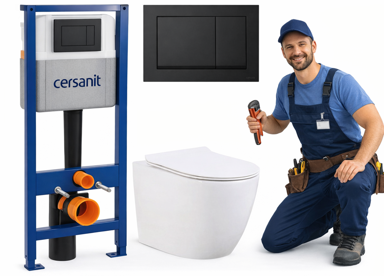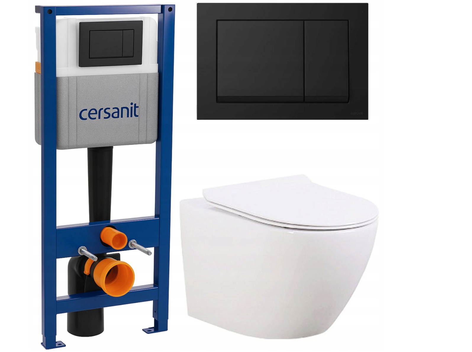 Całość uzupełnia przycisk spłukujący CERSANIT ENTER II w kolorze czarny mat, który podkreśla nowoczesny i elegancki charakter zestawu. W komplecie znajdują się również wszystkie elementy instalacyjne, w tym mata wygłuszająca, rury odpływowe oraz zestaw montażowy, co pozwala na szybki i bezproblemowy montaż bez konieczności dokupowania dodatkowych akcesoriów. Zestaw przeznaczony jest do montażu w ścianach murowanych oraz zabudowie z płyt gipsowo-kartonowych i kompatybilny z miskami WC wiszącymi o rozstawie 18 cm lub 23 cm, dzięki czemu sprawdzi się w różnych aranżacjach łazienkowych.