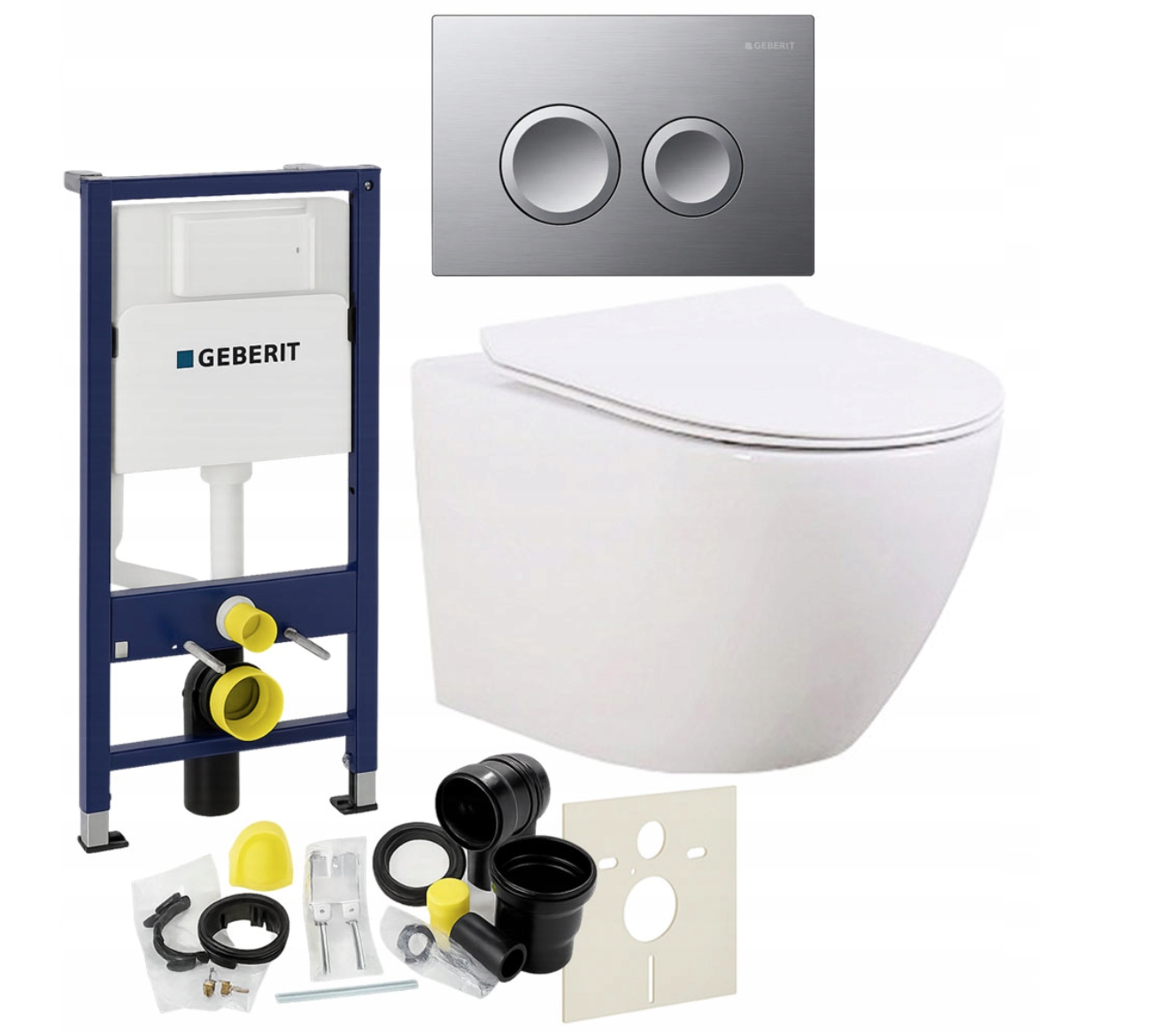 Zestaw zawiera również wszystkie elementy montażowe, w tym matę wygłuszającą, zestaw przyłączeniowy oraz komplet elementów montażowych, dzięki czemu instalacja jest szybka i nie wymaga dodatkowych zakupów. System przeznaczony jest do montażu w ścianach murowanych oraz zabudowie z płyt gipsowo-kartonowych i kompatybilny z miskami WC wiszącymi o rozstawie 18 cm lub 23 cm, co zapewnia szerokie możliwości zastosowania w nowoczesnych i klasycznych aranżacjach łazienkowych.