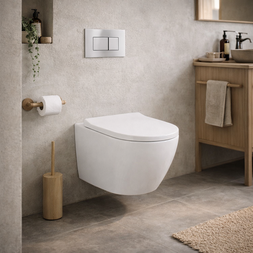 Zestaw podtynkowy WC 7w1 to funkcjonalne i eleganckie rozwiązanie do nowoczesnych łazienek, które łączy estetykę z wygodą codziennego użytkowania. W zestawie znajduje się stelaż podtynkowy CERSANIT MITO, miska WC ARBO TORNADO bezkołnierzowa, deska wolnoopadająca oraz komplet elementów niezbędnych do montażu. Dzięki instalacji podtynkowej łazienka zyskuje minimalistyczny wygląd, więcej przestrzeni oraz łatwiejsze utrzymanie czystości.