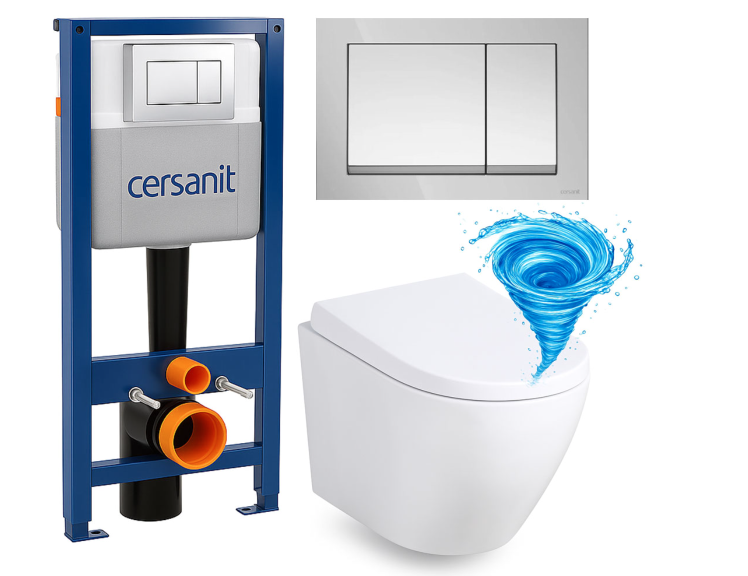 W zestawie znajduje się miska WC ARBO TORNADO wykonana z wysokiej jakości ceramiki sanitarnej. Bezkołnierzowa konstrukcja ogranicza gromadzenie się zabrudzeń i bakterii, co znacząco ułatwia utrzymanie higieny. Do kompletu dołączona jest deska sedesowa wolnoopadająca, zapewniająca ciche i komfortowe zamykanie oraz łatwe wypinanie do czyszczenia. Całość uzupełnia przycisk spłukujący CERSANIT ENTER II w wykończeniu chrom błyszczący, który nadaje zestawowi elegancki i nowoczesny charakter.