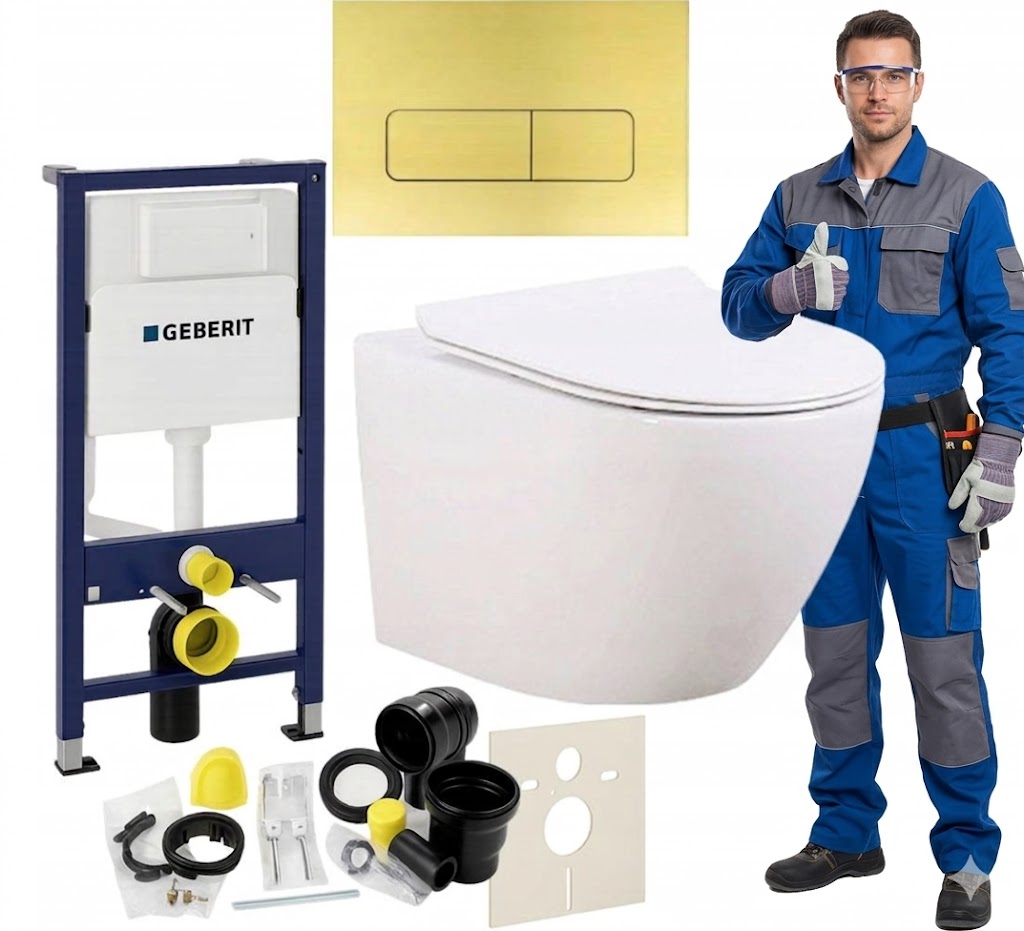 Zestaw podtynkowy WC 7w1 Stelaż Miska WC Deska wolnoopadająca Przycisk GOLA