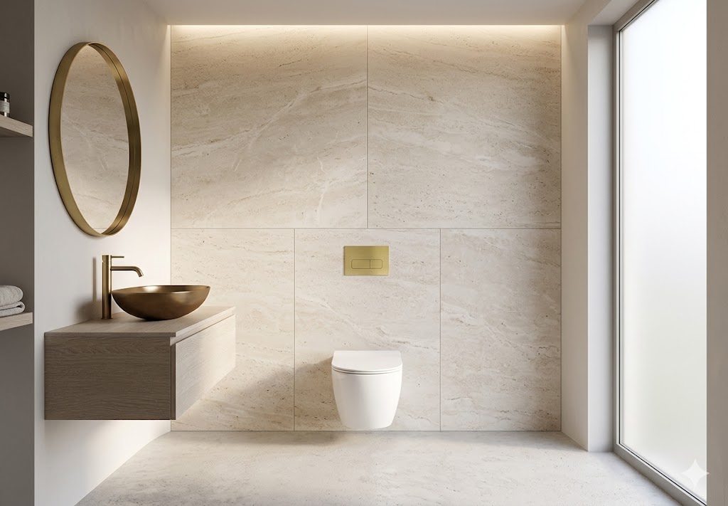 W zestawie znajduje się miska WC ARBO PRIMO SLIM wykonana z wysokiej jakości ceramiki sanitarnej. Bezkołnierzowa konstrukcja Rimless eliminuje miejsca gromadzenia się zabrudzeń i bakterii, co znacząco podnosi poziom higieny i ułatwia czyszczenie. Do kompletu dołączona jest deska sedesowa wolnoopadająca z funkcją szybkiego wypinania, która zapewnia ciche zamykanie i łatwe utrzymanie czystości. Całość uzupełnia przycisk spłukujący Geberit ARBO w kolorze złotym, który nadaje zestawowi nowoczesny i uniwersalny charakter.