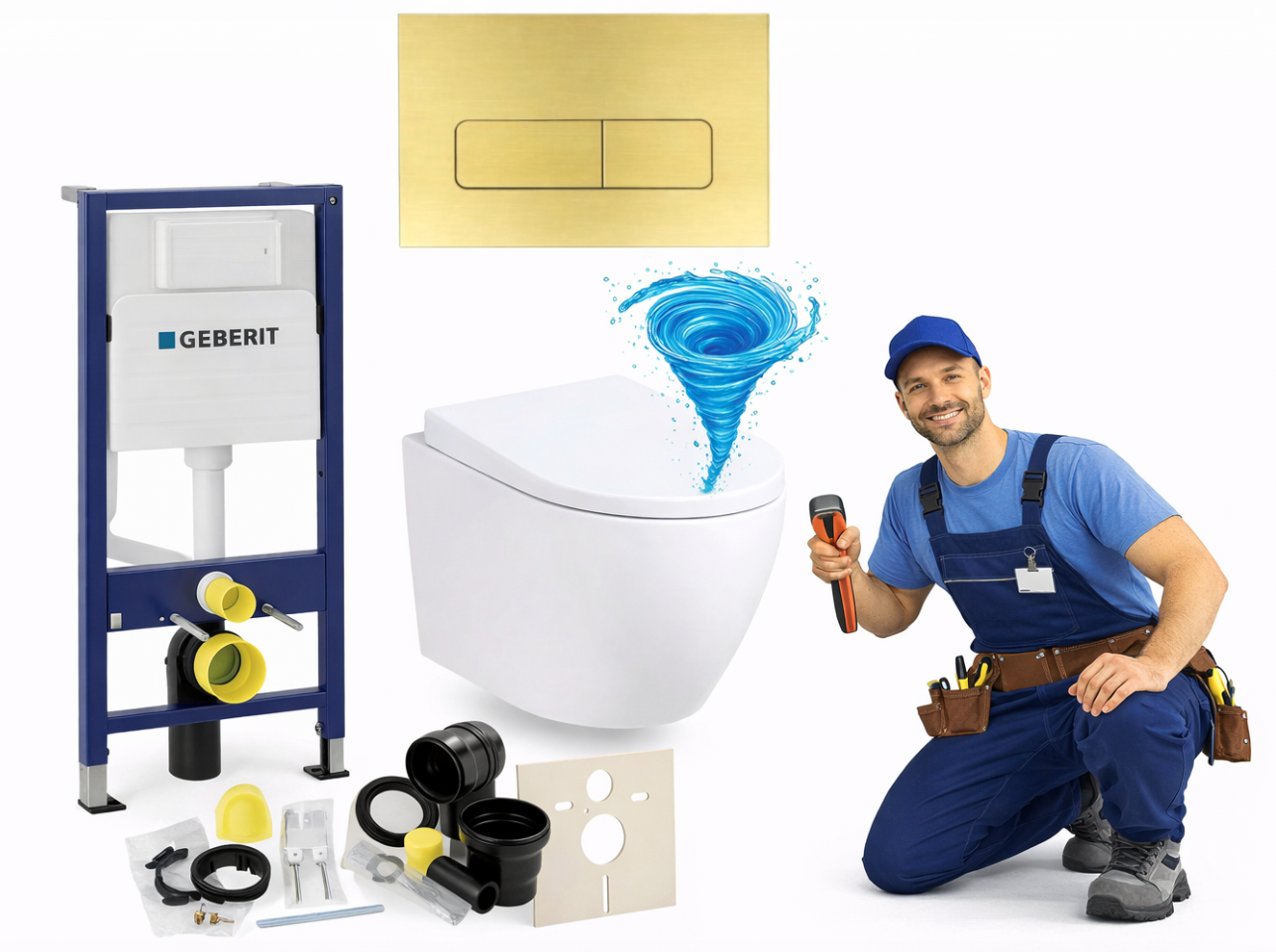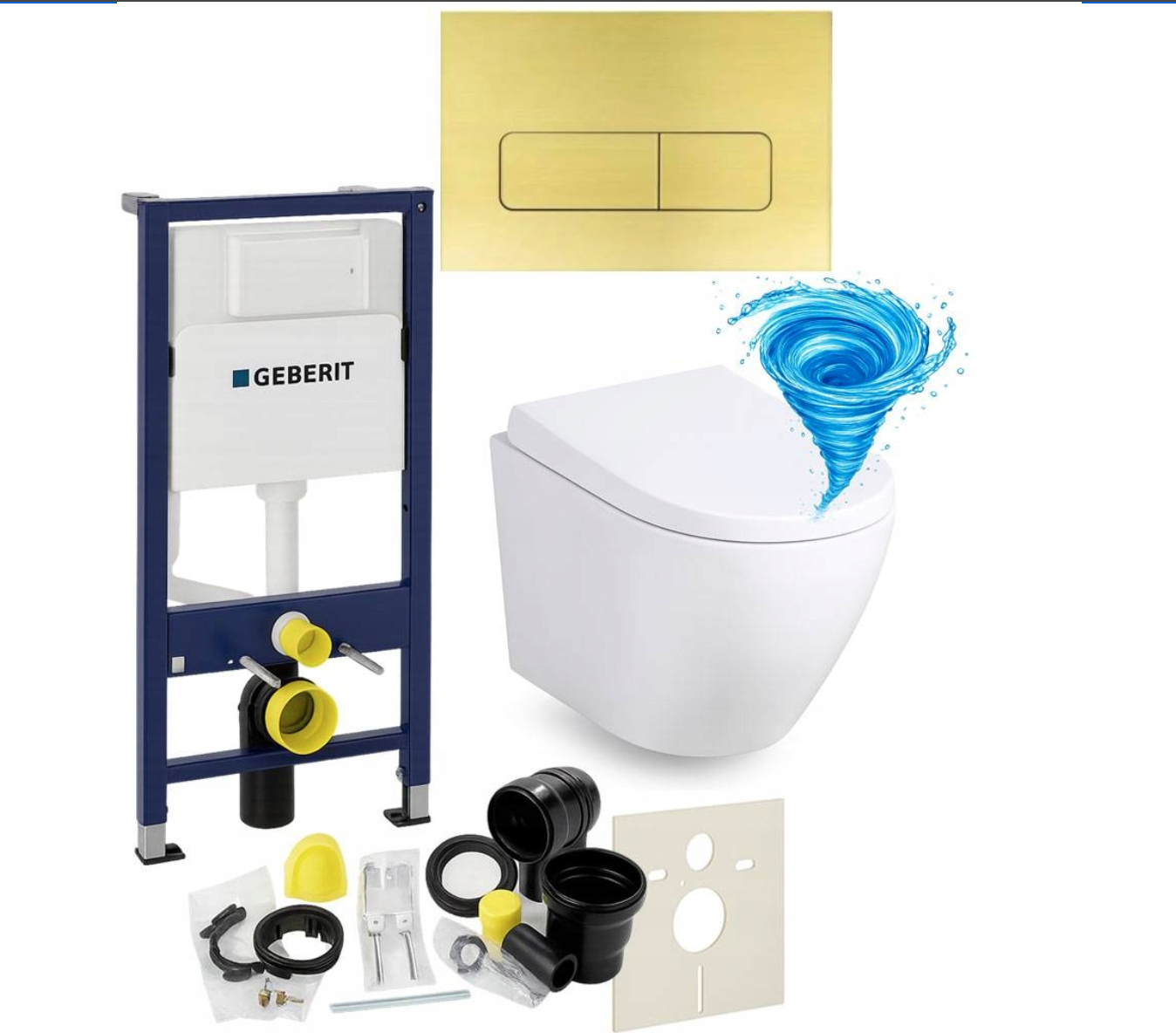 Całość uzupełnia przycisk spłukujący ARBO GOLD w wykończeniu złoty połysk, który nadaje zestawowi elegancki, luksusowy charakter i wyróżnia go na tle standardowych rozwiązań. W komplecie znajdują się również wszystkie elementy montażowe, w tym mata wygłuszająca, zestaw przyłączeniowy (rura, kolanko, uszczelki) oraz zestaw montażowy, dzięki czemu instalacja jest szybka i nie wymaga dodatkowych zakupów.