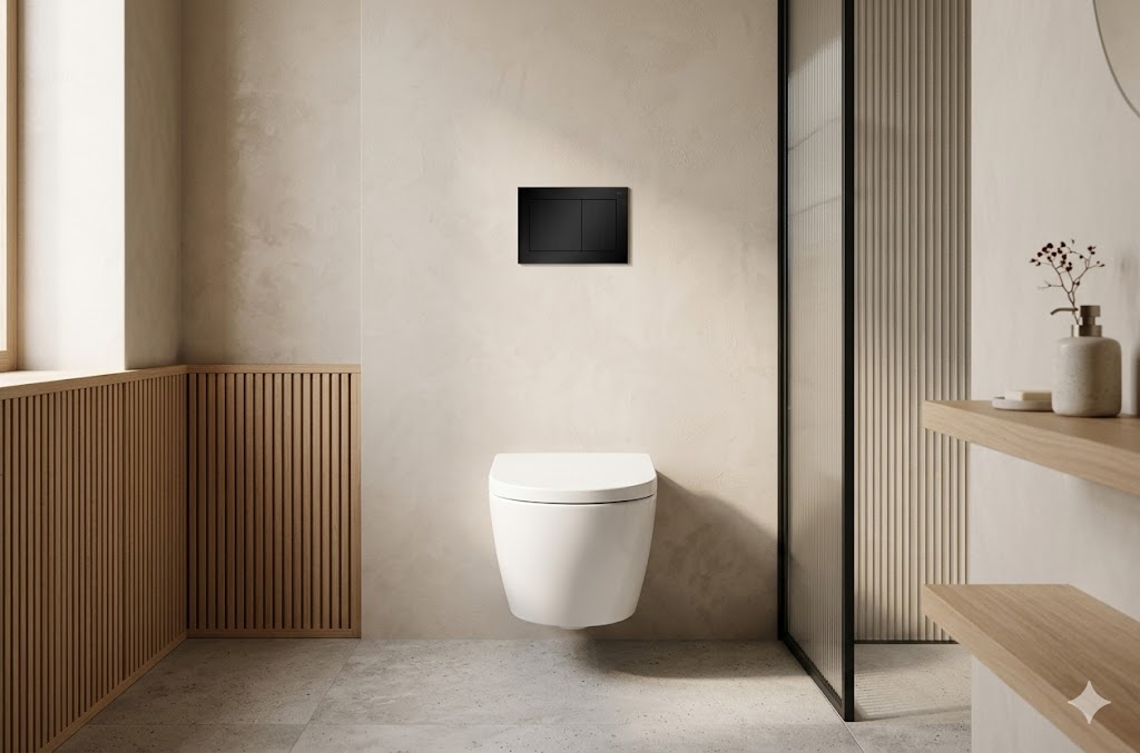 W zestawie znajduje się miska WC ARBO PRIMO SLIM, wykonana z wysokiej jakości ceramiki sanitarnej. Bezkołnierzowa konstrukcja znacząco ułatwia utrzymanie czystości, ograniczając osadzanie się zabrudzeń i bakterii. Do kompletu dołączona jest deska sedesowa wolnoopadająca, która zapewnia ciche zamykanie i wysoki komfort użytkowania. Całość uzupełnia przycisk TECE w kolorze czarny mat, który nadaje zestawowi nowoczesny i elegancki charakter.