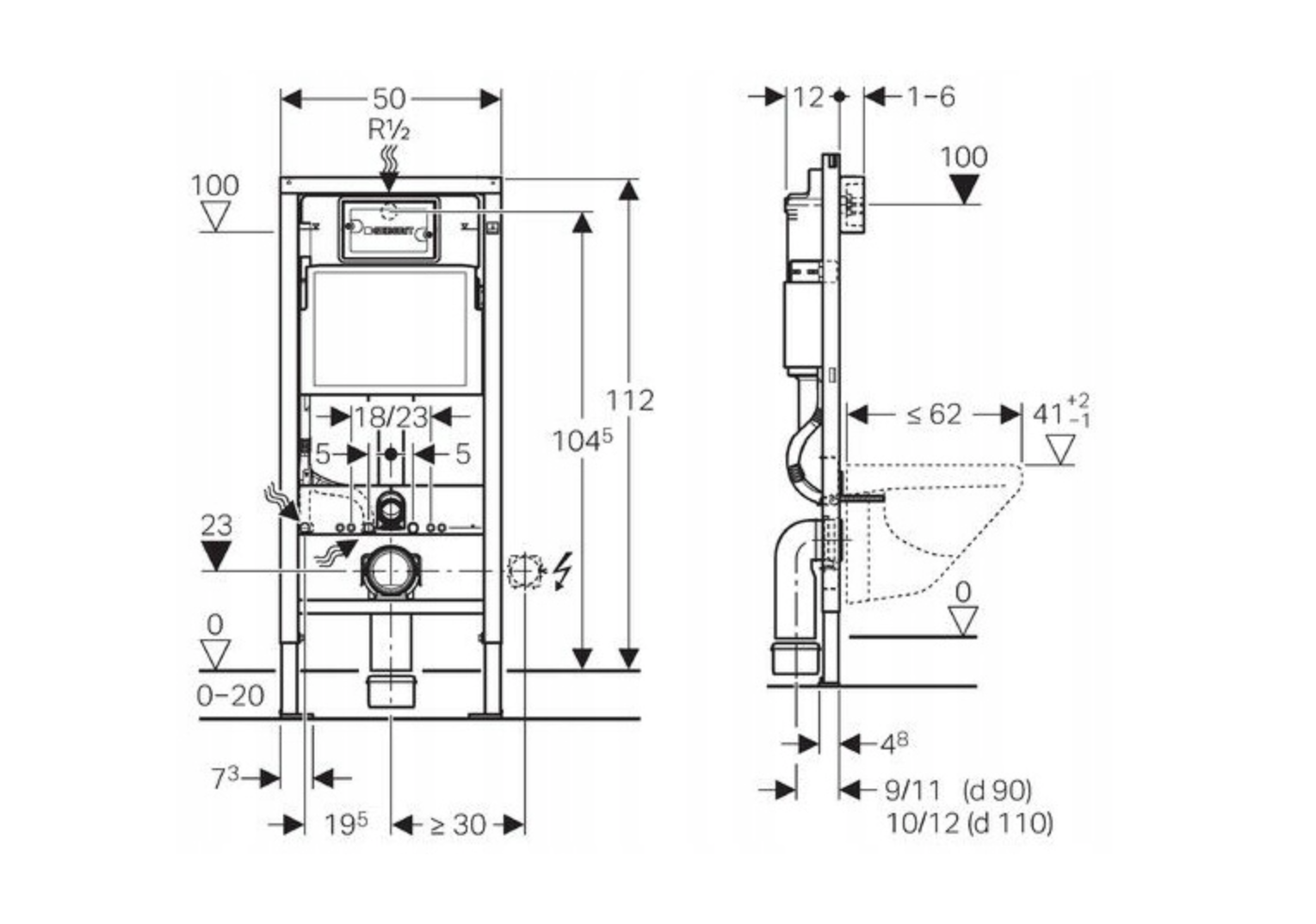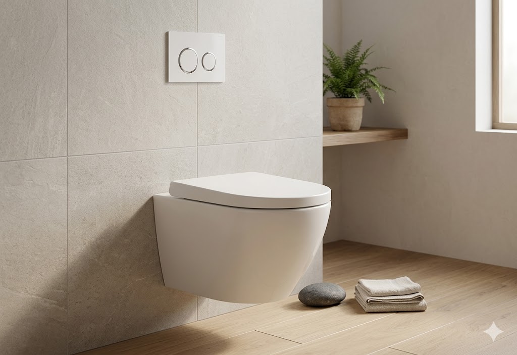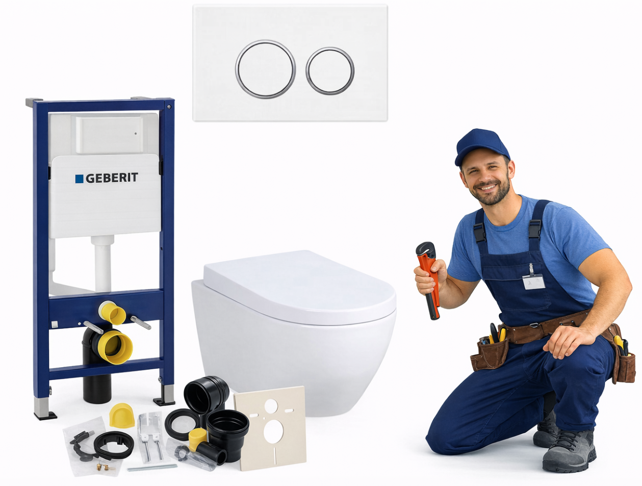 Sercem zestawu jest stelaż Geberit UP100, ceniony za niezawodność i wysoką jakość wykonania. Samonośna konstrukcja o wytrzymałości do 400 kg gwarantuje stabilność i bezpieczeństwo użytkowania przez długie lata. System wyposażony jest w spłuczkę uruchamianą od przodu, izolację przeciwroszeniową oraz dwudzielny system spłukiwania z możliwością regulacji ilości wody, co pozwala ograniczyć jej zużycie. Regulowane nogi w zakresie 0–20 cm oraz minimalna głębokość zabudowy 12 cm umożliwiają łatwe dopasowanie instalacji do różnych warunków montażowych, a przyłącze wody od góry lub z tyłu zwiększa elastyczność montażu.