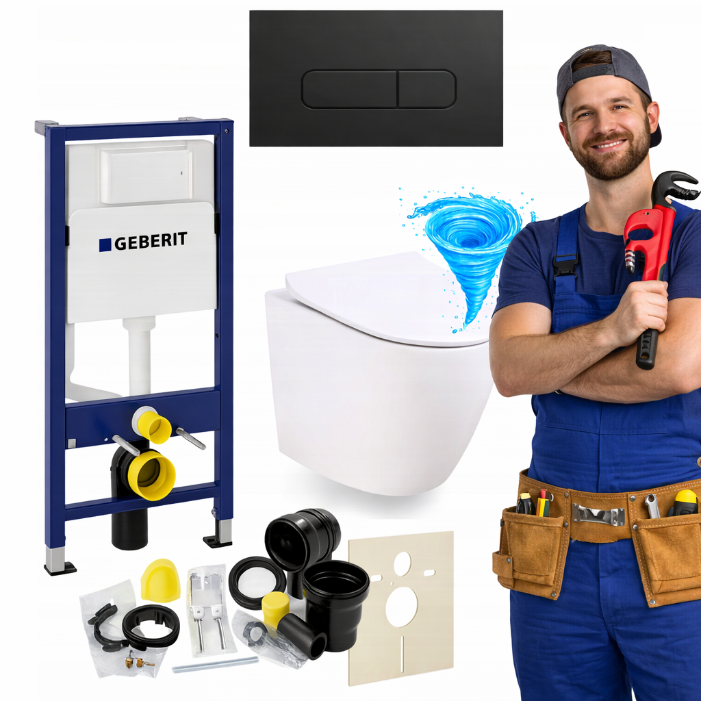 Sercem zestawu jest stelaż podtynkowy Geberit UP100, ceniony za trwałość i niezawodność. Samonośna stalowa rama malowana proszkowo zapewnia stabilność oraz wytrzymałość konstrukcji do 400 kg, a regulowane nogi w zakresie 0–20 cm umożliwiają dopasowanie wysokości do warunków montażowych. Spłuczka wyposażona jest w dwudzielny system spłukiwania, który pozwala oszczędzać wodę, a także w izolację przeciwroszeniową, chroniącą przed skraplaniem wilgoci. System umożliwia regulację ilości wody, natychmiastowe ponowne spłukiwanie oraz podłączenie wody od góry lub z tyłu, co ułatwia instalację.
