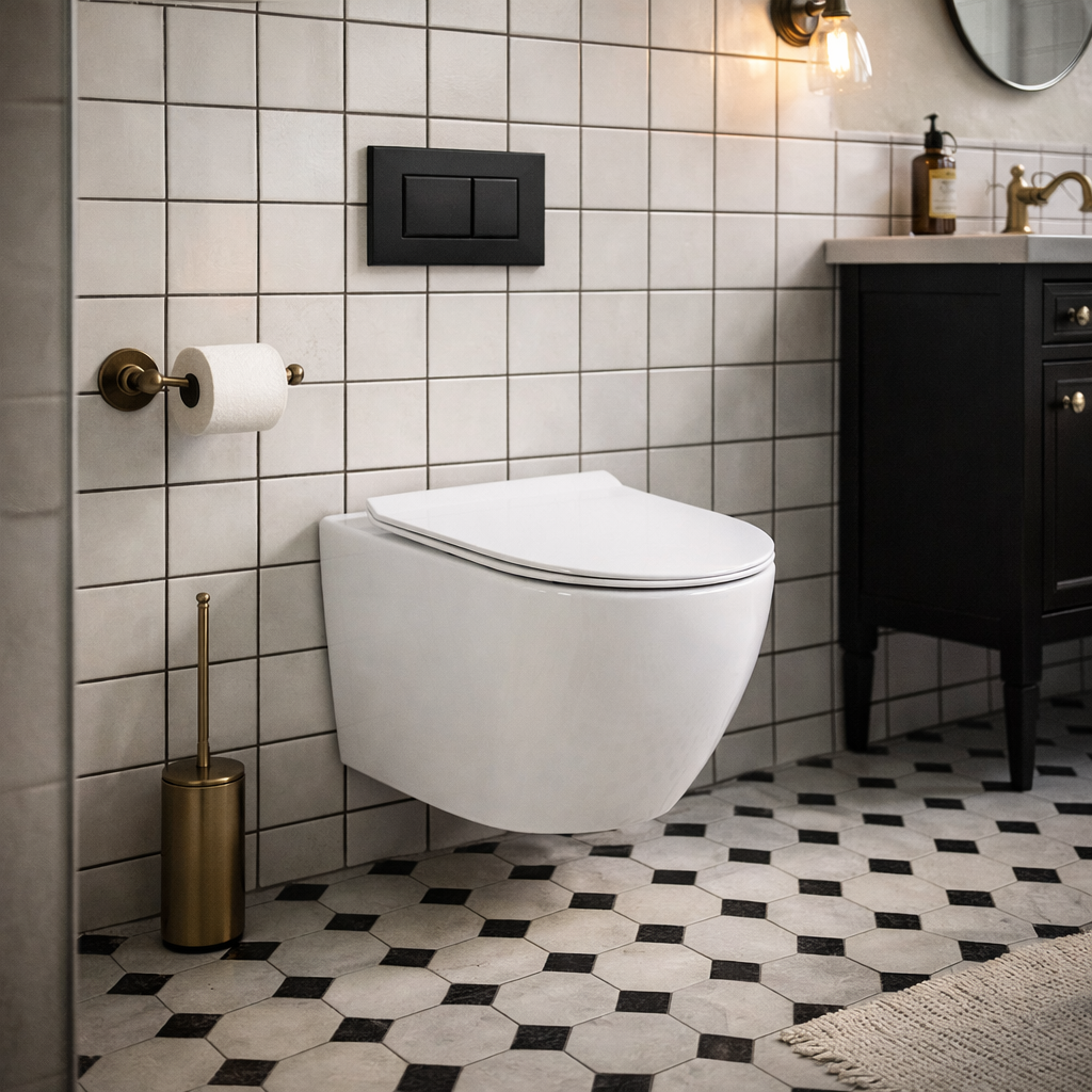 W zestawie znajduje się miska WC ARBO TORNADO SLIM wykonana z wysokiej jakości ceramiki sanitarnej. Bezkołnierzowa konstrukcja ogranicza gromadzenie się zabrudzeń i bakterii, co znacząco ułatwia utrzymanie higieny. Do kompletu dołączona jest deska sedesowa wolnoopadająca, która zapewnia ciche zamykanie oraz łatwe wypinanie do czyszczenia. Całość uzupełnia przycisk spłukujący ARBO CZARNY MAT 10, który nadaje zestawowi nowoczesny i elegancki charakter.