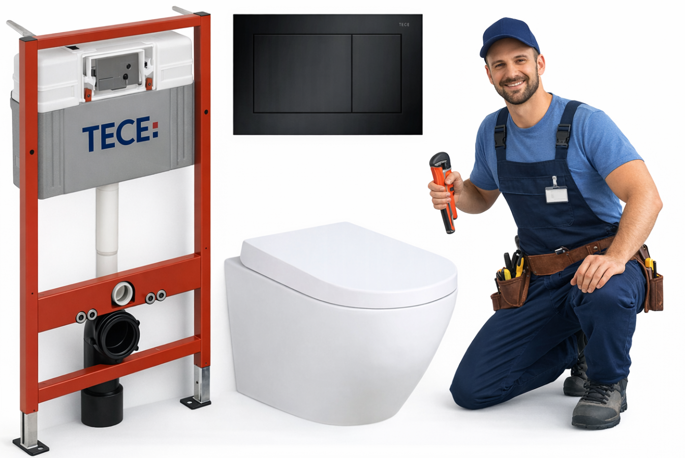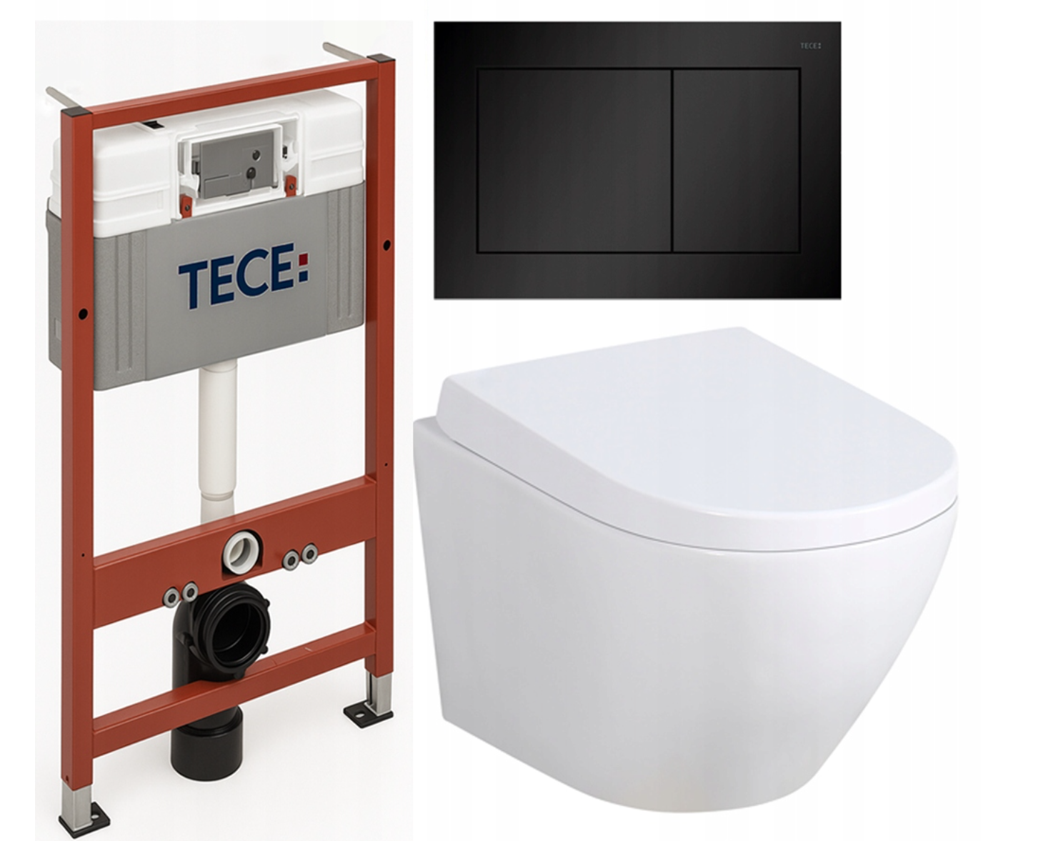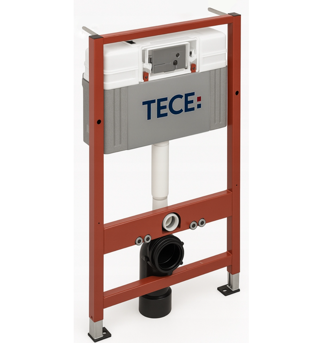 Podstawą zestawu jest stelaż TECE, wykonany z solidnej, samonośnej konstrukcji, która gwarantuje stabilność i długotrwałe użytkowanie. System wyposażony jest w spłuczkę uruchamianą od przodu, izolację przeciwroszeniowąoraz dwudzielny system spłukiwania, który umożliwia oszczędne gospodarowanie wodą. Dodatkowo możliwa jest regulacja ilości spłukiwania, a regulowane nogi w zakresie 0–20 cm pozwalają na łatwe dopasowanie wysokości montażu. Rama malowana proszkowo oraz głębokość zabudowy 15 cm zapewniają trwałość i uniwersalność zastosowania.