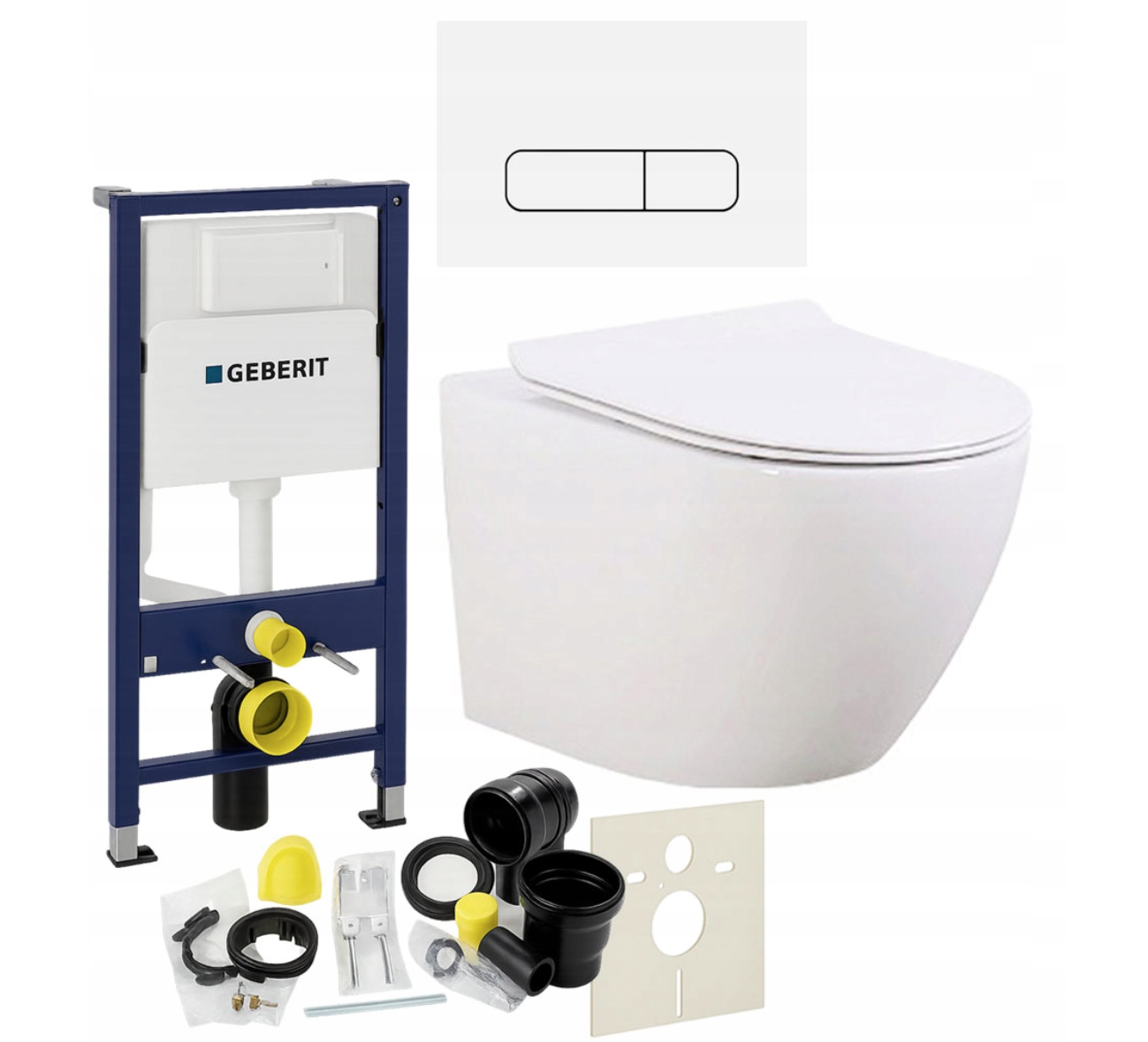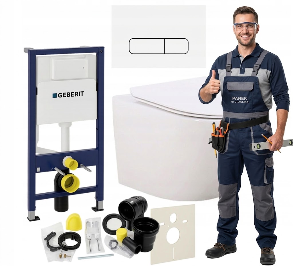 Zestaw zawiera również wszystkie elementy montażowe, w tym matę wygłuszającą, zestaw przyłączeniowy z rurą spłukującą, kolankiem odpływowym i uszczelkami oraz śruby, wsporniki i zaślepki, dzięki czemu instalacja jest szybka i wygodna. System przeznaczony jest do montażu w ścianie murowanej lub zabudowie z płyt gipsowo-kartonowych i kompatybilny z miskami WC wiszącymi o rozstawie 18 cm lub 23 cm oraz przyciskami Geberit Delta.