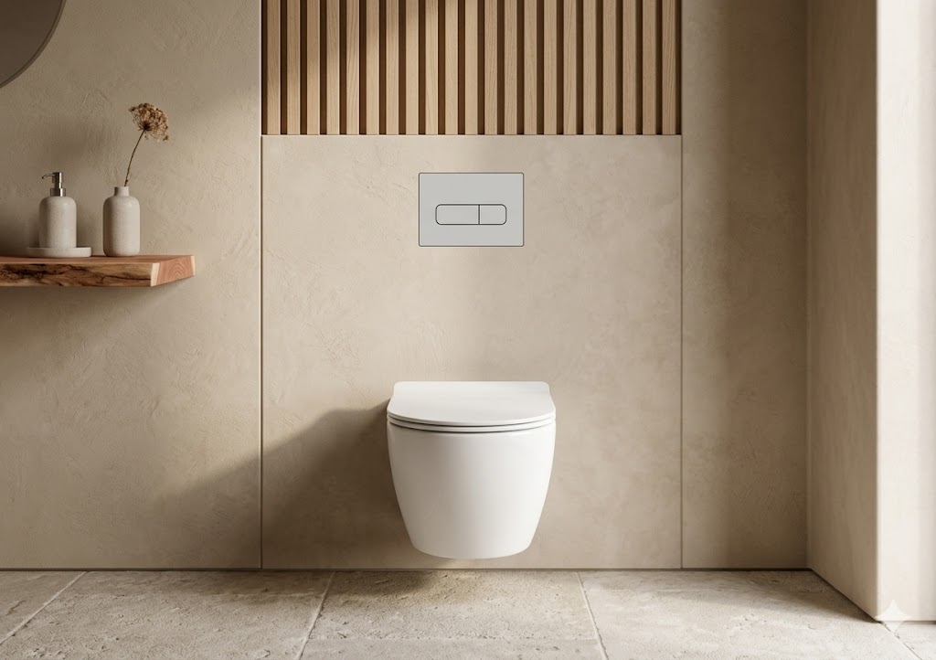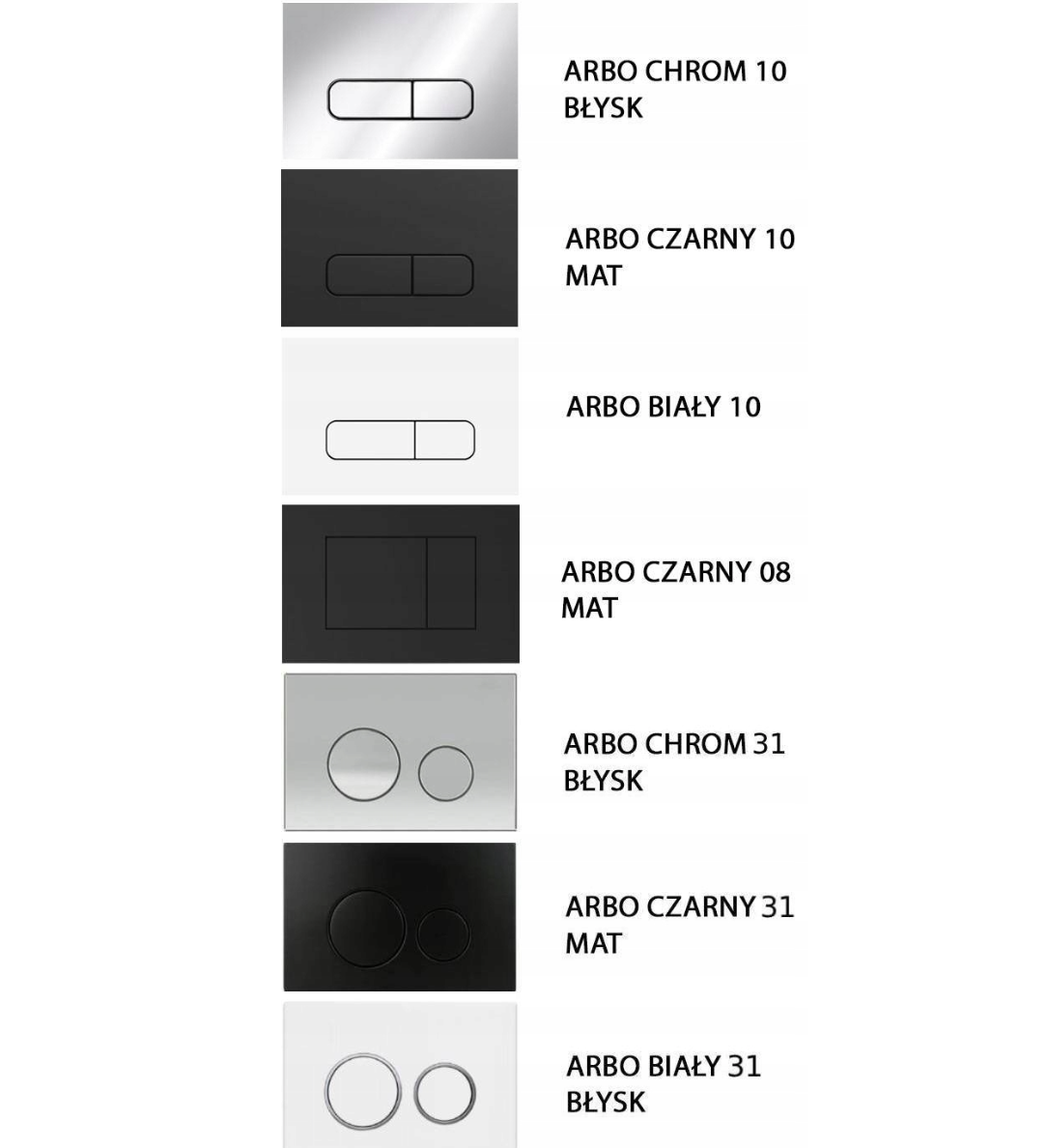 W zestawie znajduje się miska WC ARBO PRIMO SLIM wykonana z wysokiej jakości ceramiki sanitarnej. Bezkołnierzowa konstrukcja Rimless eliminuje miejsca gromadzenia się zabrudzeń i bakterii, co znacząco podnosi poziom higieny i ułatwia czyszczenie. Do kompletu dołączona jest deska sedesowa wolnoopadająca z funkcją szybkiego wypinania, która zapewnia ciche zamykanie i łatwe utrzymanie czystości. Całość uzupełnia przycisk spłukujący Geberit ARBO w kolorze białym, który nadaje zestawowi nowoczesny i uniwersalny charakter.
