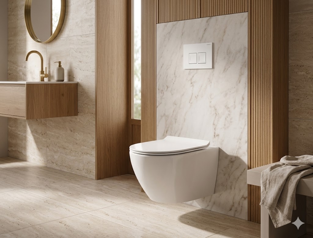 W zestawie znajduje się miska WC ARBO PRIMO SLIM wykonana z wysokiej jakości ceramiki sanitarnej. Bezkołnierzowa konstrukcja Rimless eliminuje miejsca gromadzenia się zabrudzeń i bakterii, co znacząco podnosi poziom higieny i ułatwia czyszczenie. Do kompletu dołączona jest deska sedesowa wolnoopadająca z funkcją szybkiego wypinania, która zapewnia ciche zamykanie i łatwe utrzymanie czystości. Całość uzupełnia przycisk spłukujący Geberit DELTA 35 w kolorze białym, który nadaje zestawowi nowoczesny i uniwersalny charakter.