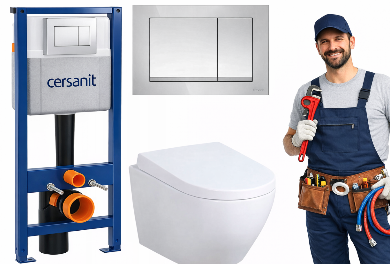 Zestaw zawiera również wszystkie elementy montażowe, w tym matę wygłuszającą, rury odpływowe, wspornik oraz śruby montażowe, dzięki czemu instalacja jest szybka i nie wymaga dokupowania dodatkowych komponentów. System przeznaczony jest do montażu w ścianach murowanych lub zabudowie z płyt gipsowo-kartonowych i kompatybilny z miskami WC wiszącymi o rozstawie 18 cm lub 23 cm, co zapewnia uniwersalne zastosowanie w różnych projektach łazienkowych.