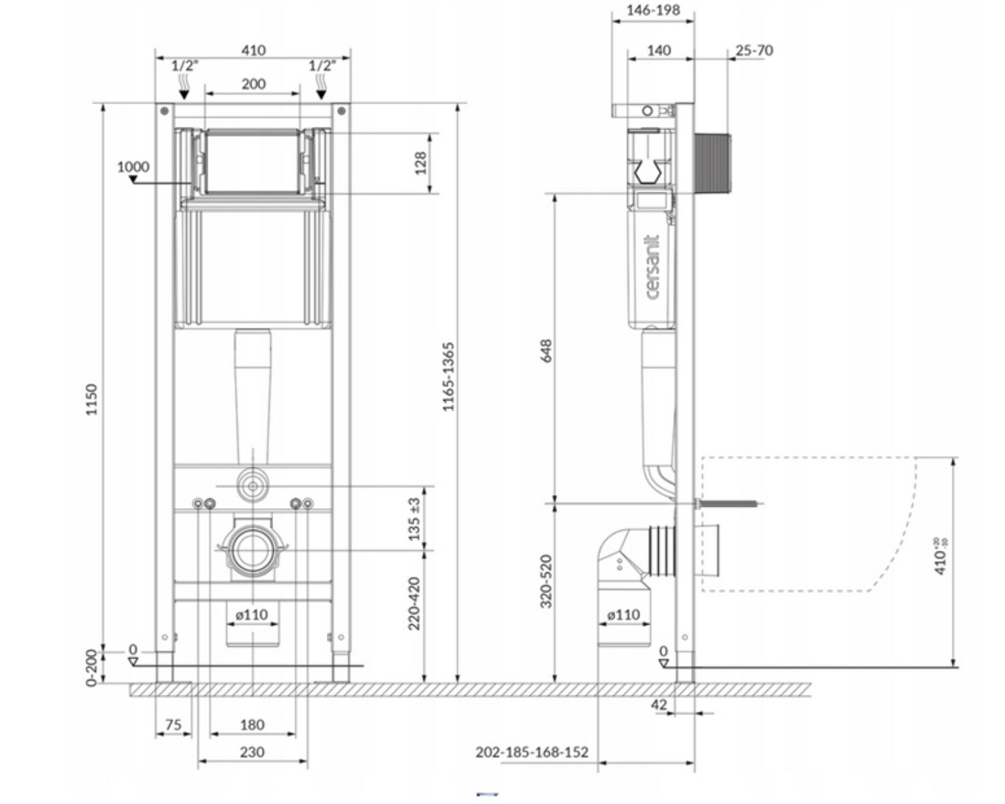 Podstawą zestawu jest stelaż CERSANIT MITO, wykonany z wytrzymałej i stabilnej konstrukcji, która zapewnia niezawodność na długie lata użytkowania. Model posiada regulowaną wysokość w zakresie 116,5–136,5 cm, co umożliwia dopasowanie instalacji do różnych warunków montażowych. System wyposażony jest w cichy mechanizm spłukiwania, izolację akustyczną i cieplną zbiornika oraz zawór odcinający, który umożliwia kontrolę przepływu wody. Dwudzielny system spłukiwania pozwala na ustawienie wariantów 2/4 l, 3/5 l lub 3/6 l, co umożliwia oszczędność wody i niższe koszty eksploatacji.