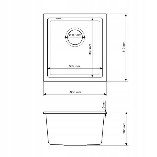 | Wymiary zlewozmywaka | 385 mm x 410 mm |