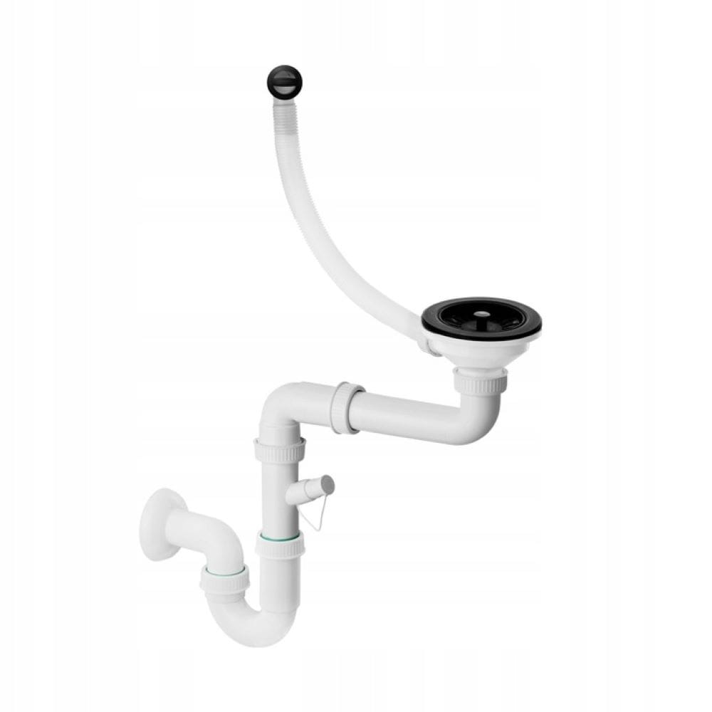 ● Jednokomorowy przyścienny syfon manualny w kolorze CZARNYM z możliwością podłączenia zmywarki lub pralki (oszczędność przestrzeni).