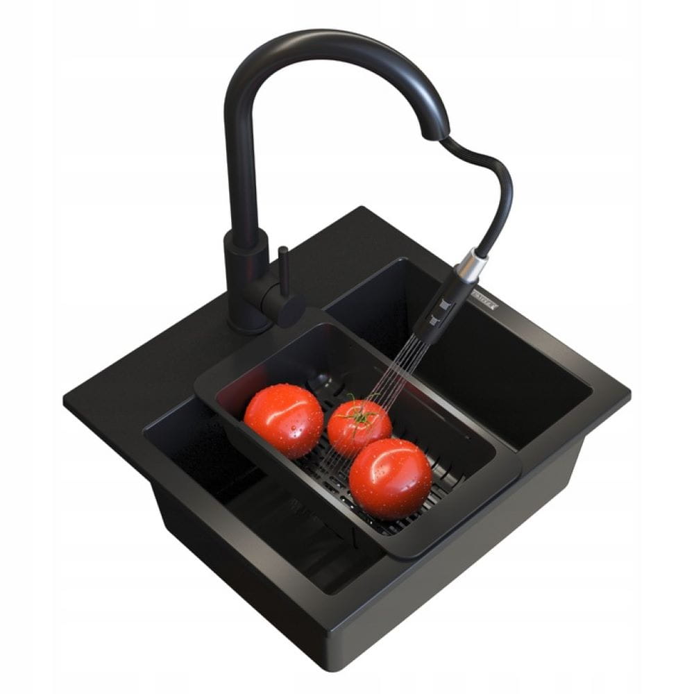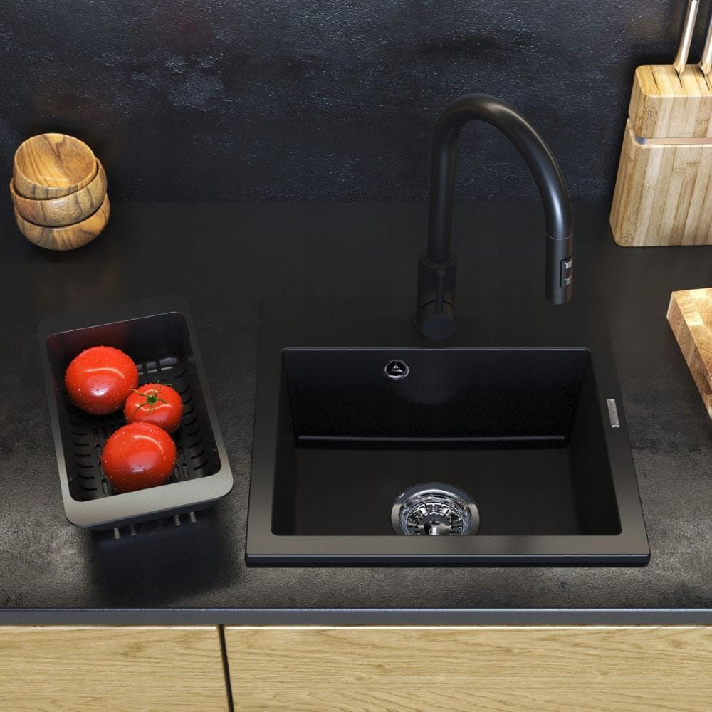 Zestaw - zlew granitowy czarny Tiny - bateria Loseto - syfon