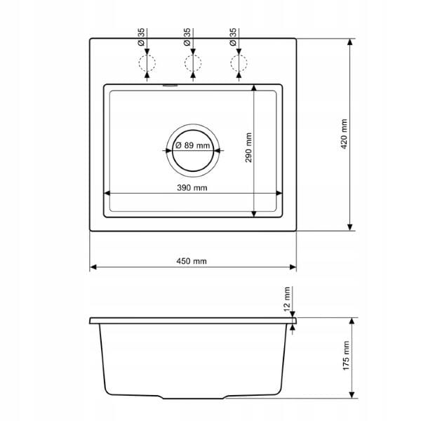 | Wymiary zlewozmywaka | 450 mm x 420 mm |