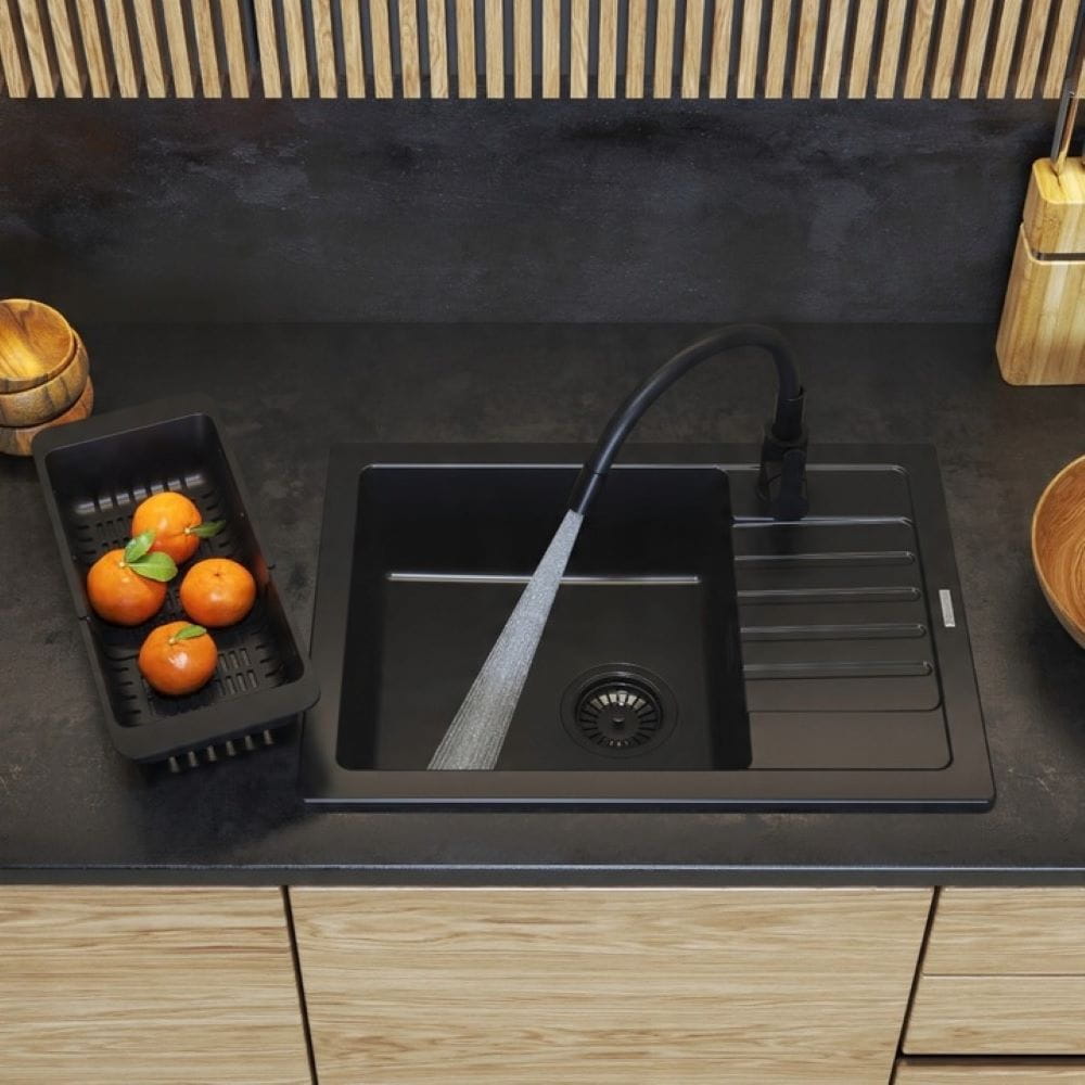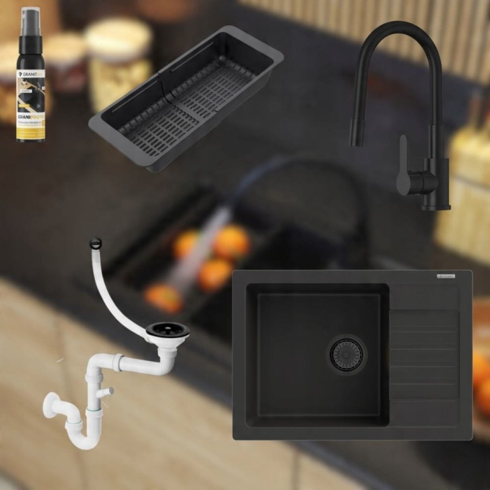 Zestaw - zlew granitowy jednokomorowy Argos - bateria - koszyk - syfon