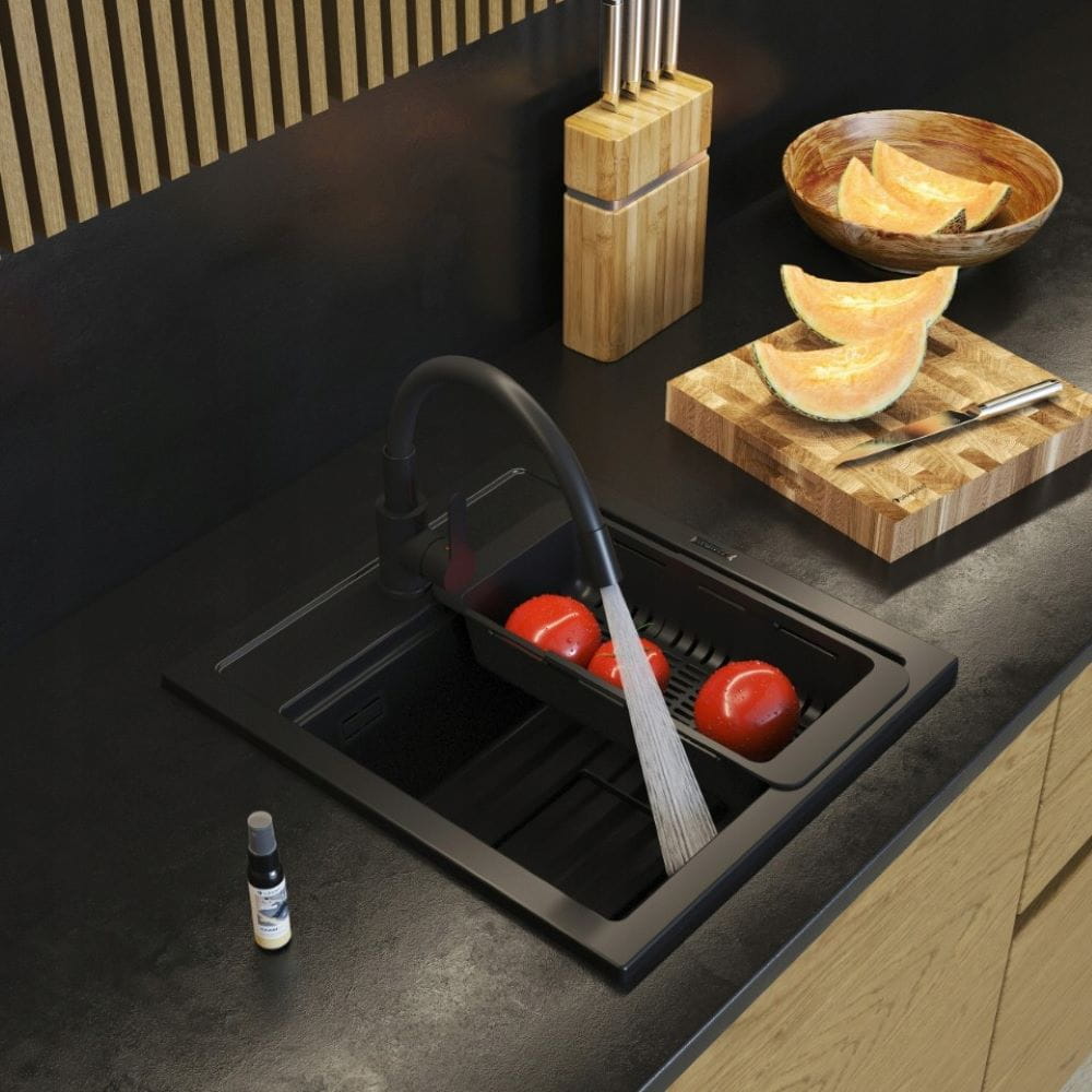 ● Nowoczesny, minimalistyczny zlewozmywak granitowy, który łączy wyjątkową trwałość z eleganckim designem. Wykonany z wysokiej jakości kompozytu granitowego, jest odporny na zarysowania, uderzenia oraz wysoką temperaturę. Jego matowa, czarna powierzchnia nadaje mu luksusowy wygląd, który doskonale komponuje się z nowoczesnymi kuchniami.