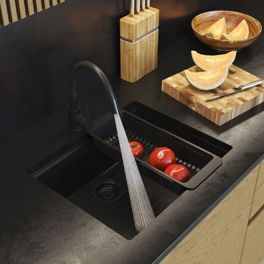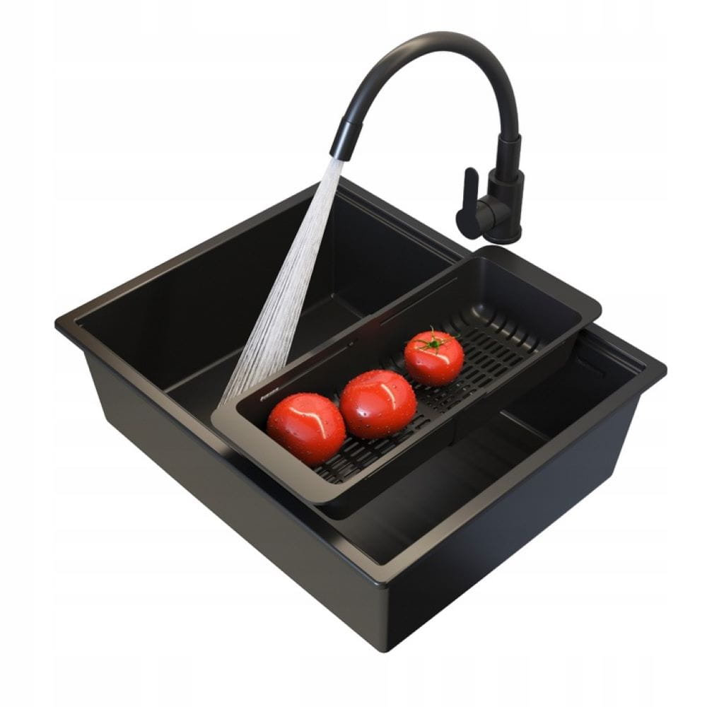 ● Koszyk składany do zlewu. Dzięki regulacji koszyk pasuje do większości zlewozmywaków dostępnych na rynku.